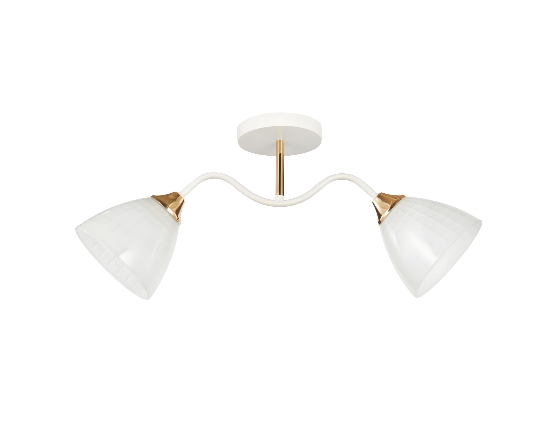 Decorative chandelier V 6241-2 WH+FG is a stylish and versatile lamp that harmoniously combines simplicity of form and elegant decorative accents. The model is equipped with two matte shades with an E27 base, which provide soft, comfortable and uniform lighting without harsh shadows. This type of shade creates a warm atmosphere and makes the chandelier a great solution for any living space.