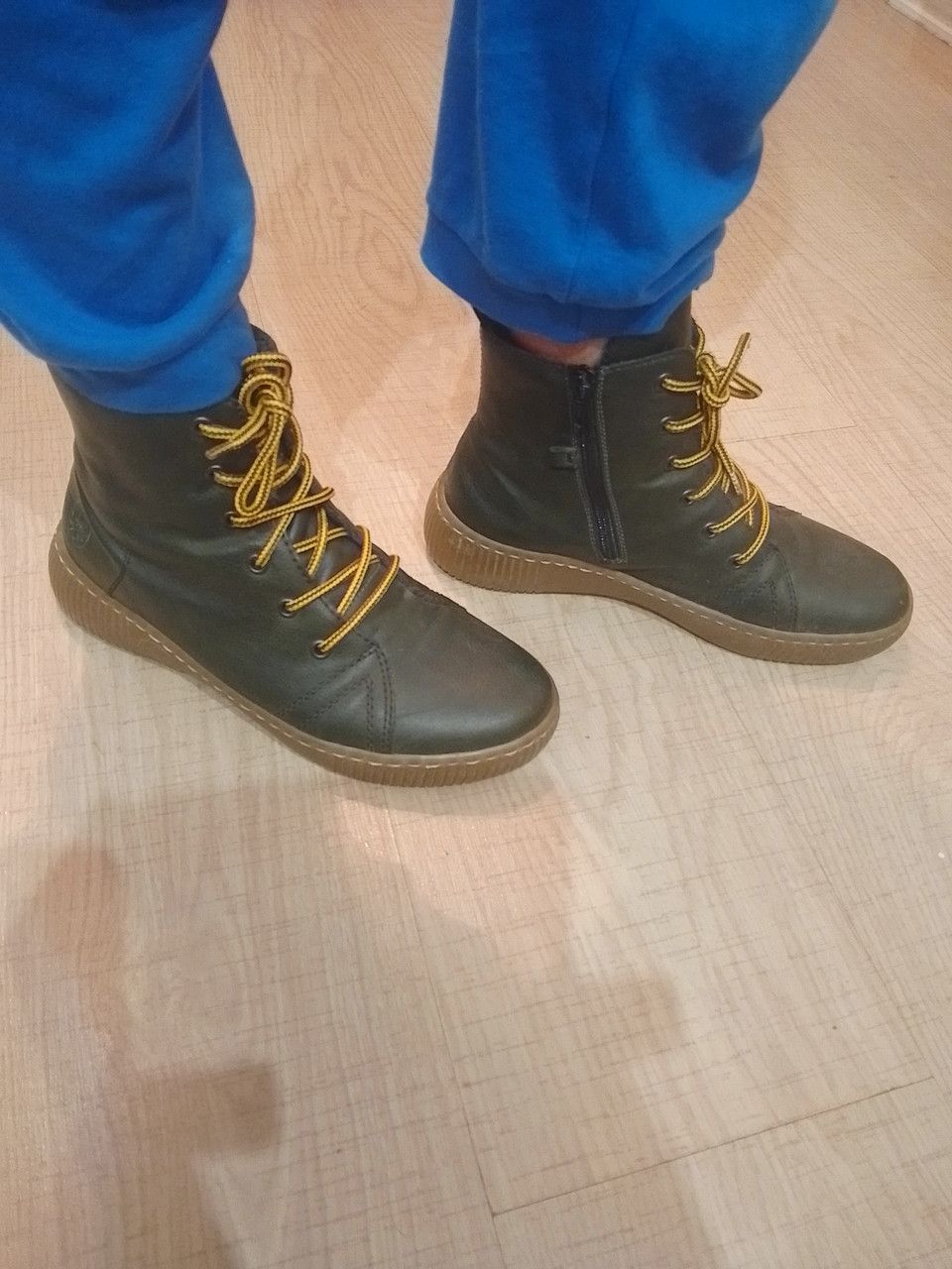 На шнурках, и молнии.
