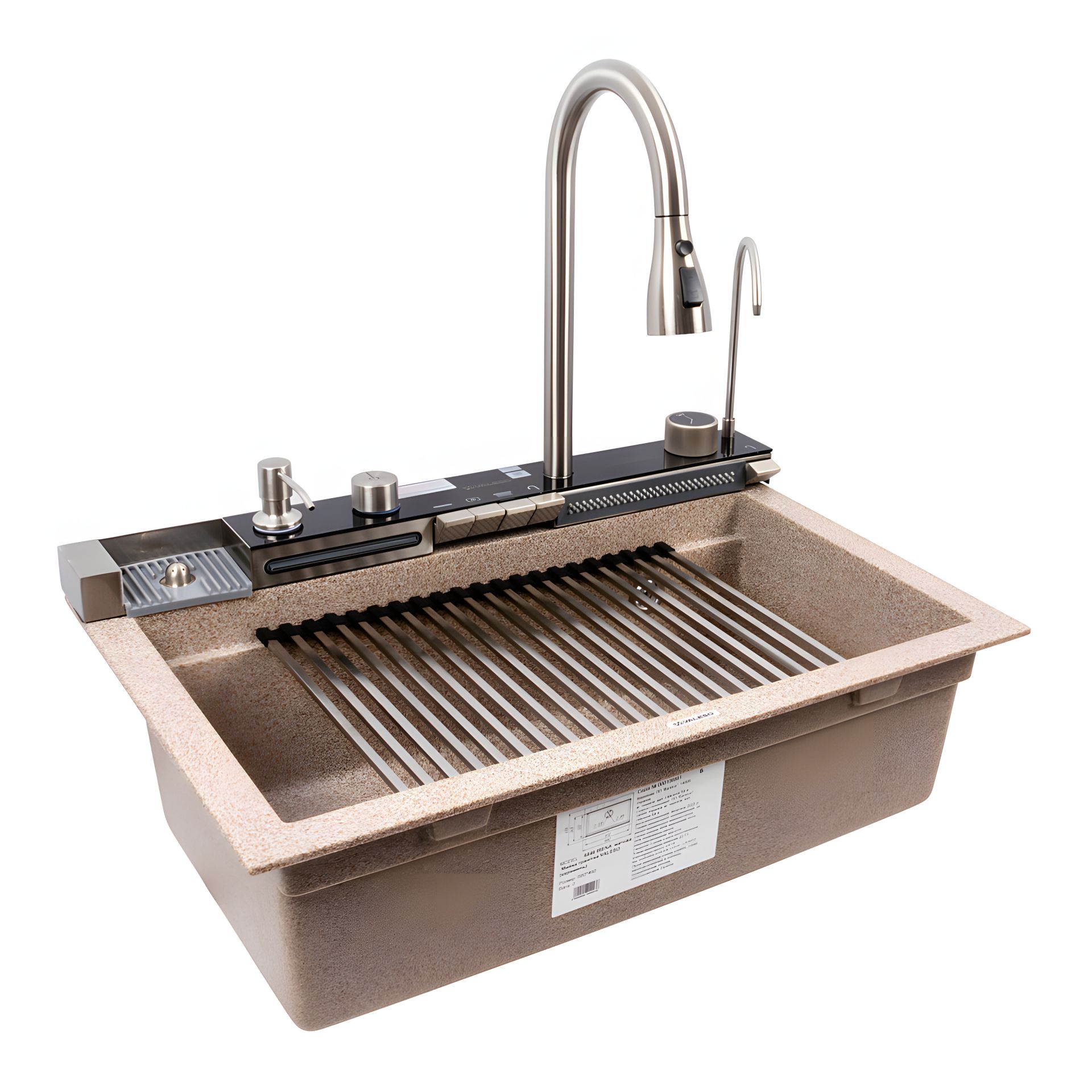 Матовая гранитная мойка VALESO 6846 IRENA (карамель), полная комплектация (Водопад)