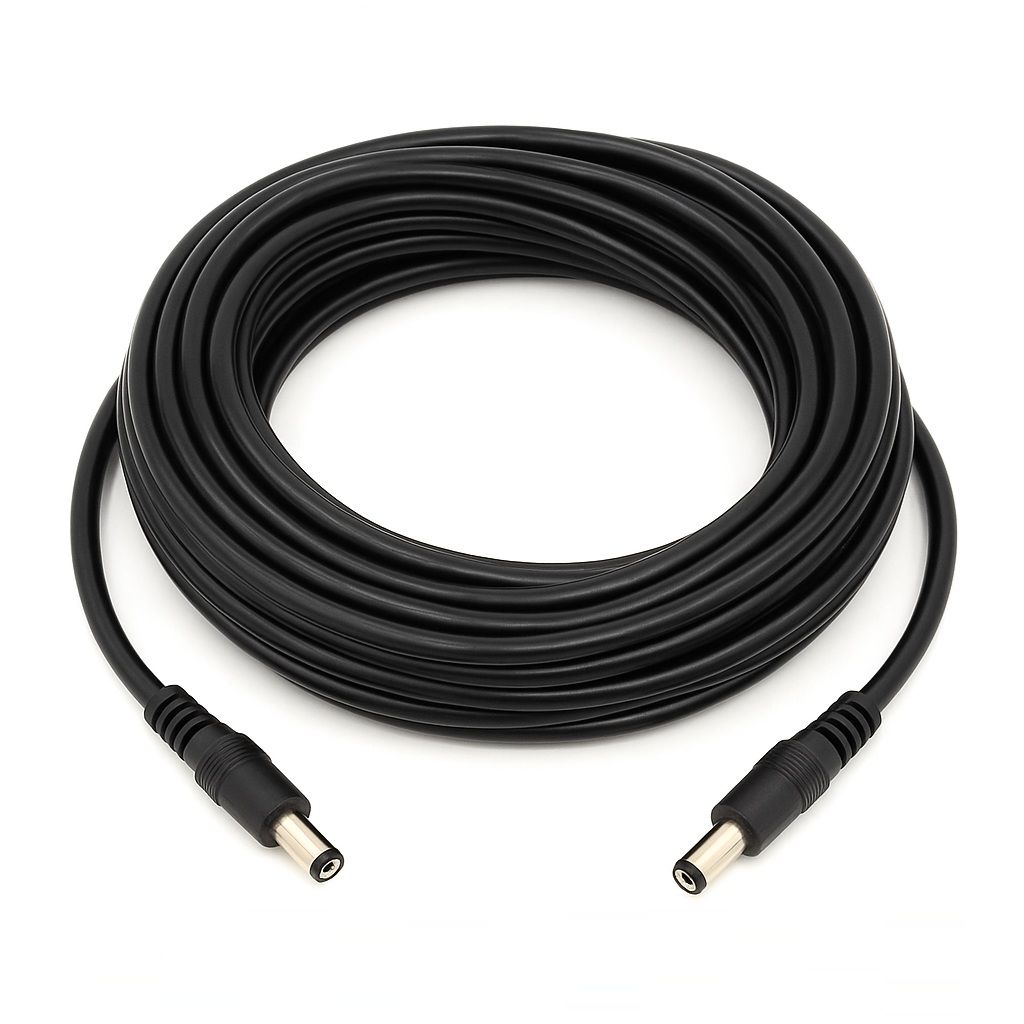 - Два одинаковых штекера позволяют подключать кабель напрямую к устройству и блоку питания либо использовать его как удлинитель между двумя разъемами DC-гнездо 5.5×2.1 мм (через соответствующие переходники). Это удобно при переносе роутера или камеры на большее расстояние от розетки.