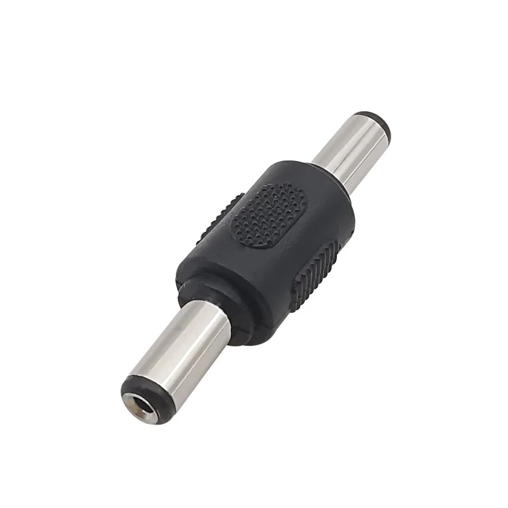 - Male-to-Male конструкция позволяет напрямую состыковать два кабеля с гнездами 5.5×2.1 мм (Female), например, блок питания и удлинитель или два отрезка кабеля. Не требуется пайка и специальные инструменты — достаточно вставить штекеры в гнезда.