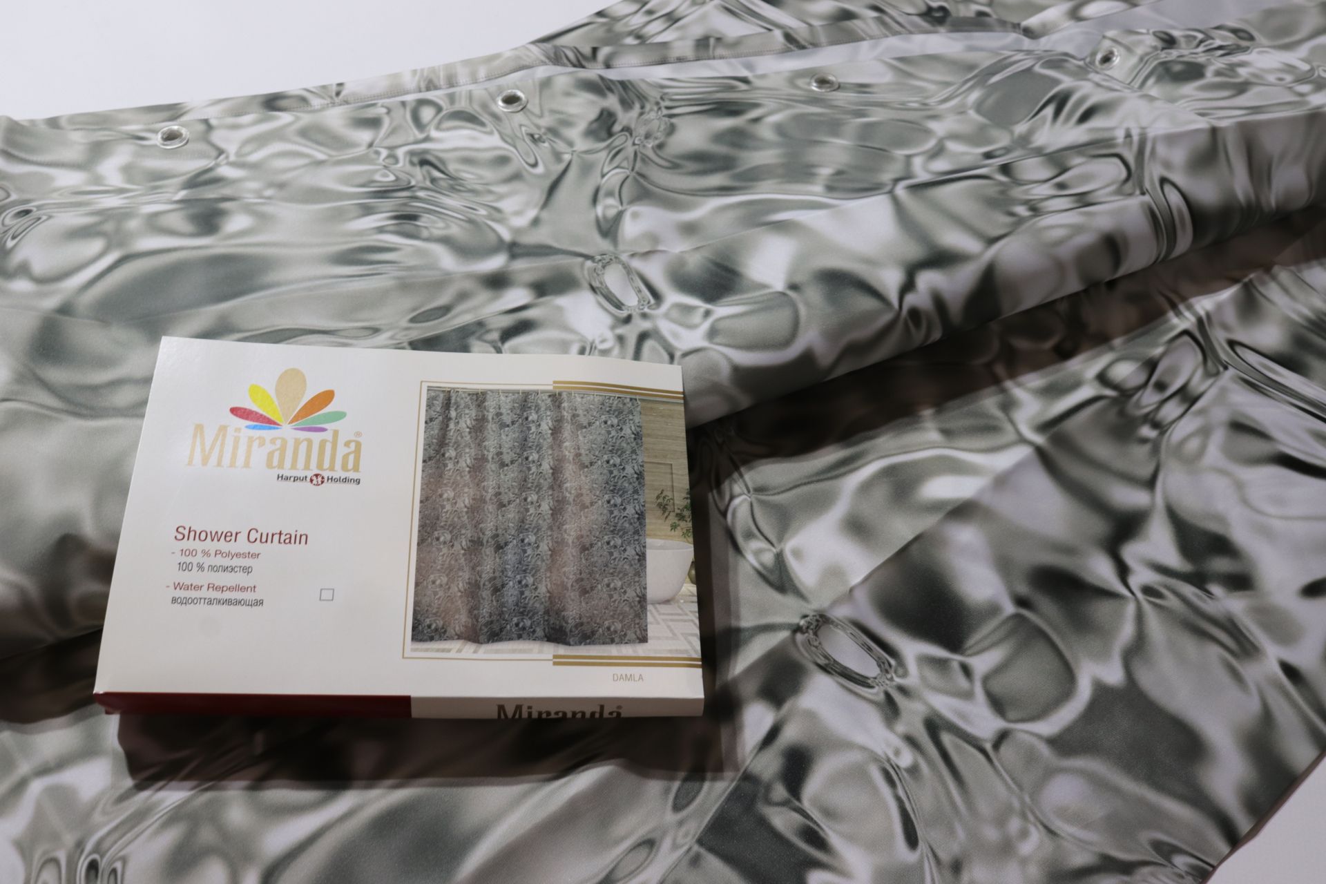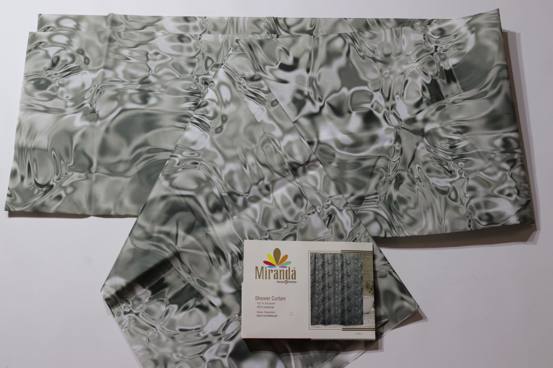 Ванная комната и занавеска для душа Miranda производства Турции. Состав 100% полиэстер (ткань с водоотталкивающей пропиткой). Отличное качество, не теряет первоначального вида даже после многократных стирок. Отверстия для колец выполнены из пластика. Кольца в комплект не входят, их можно приобрести дополнительно.