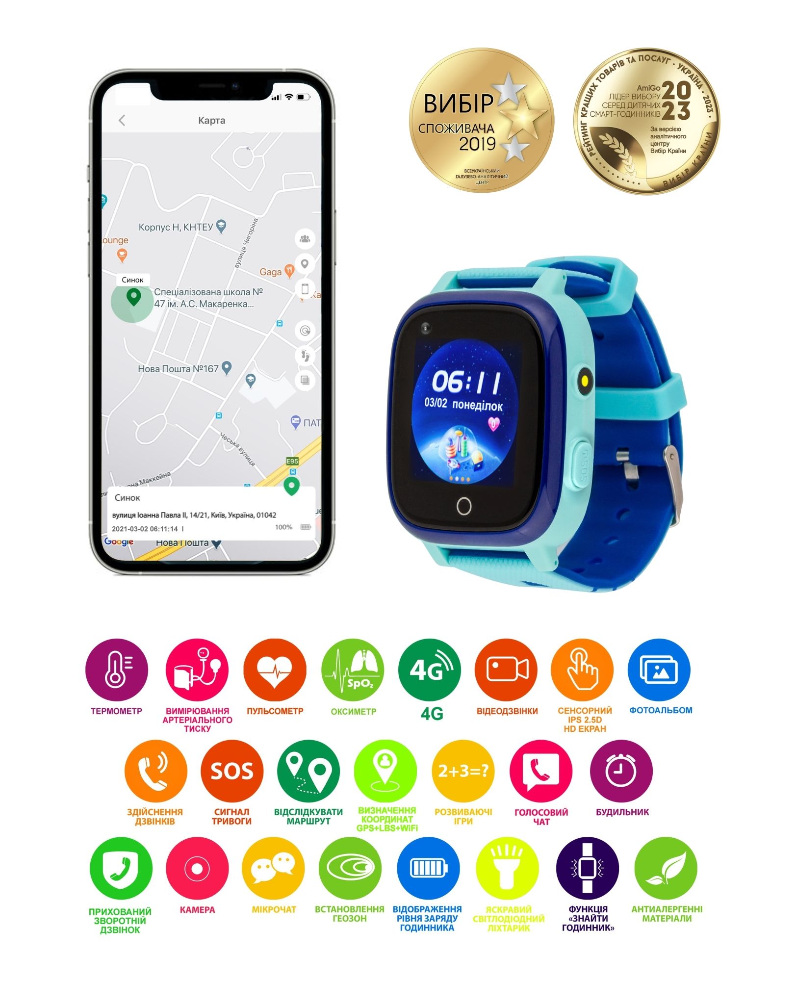 Детские смарт-часы AmiGo GO005 Thermometer 4G WIFI Blue UA UCRF