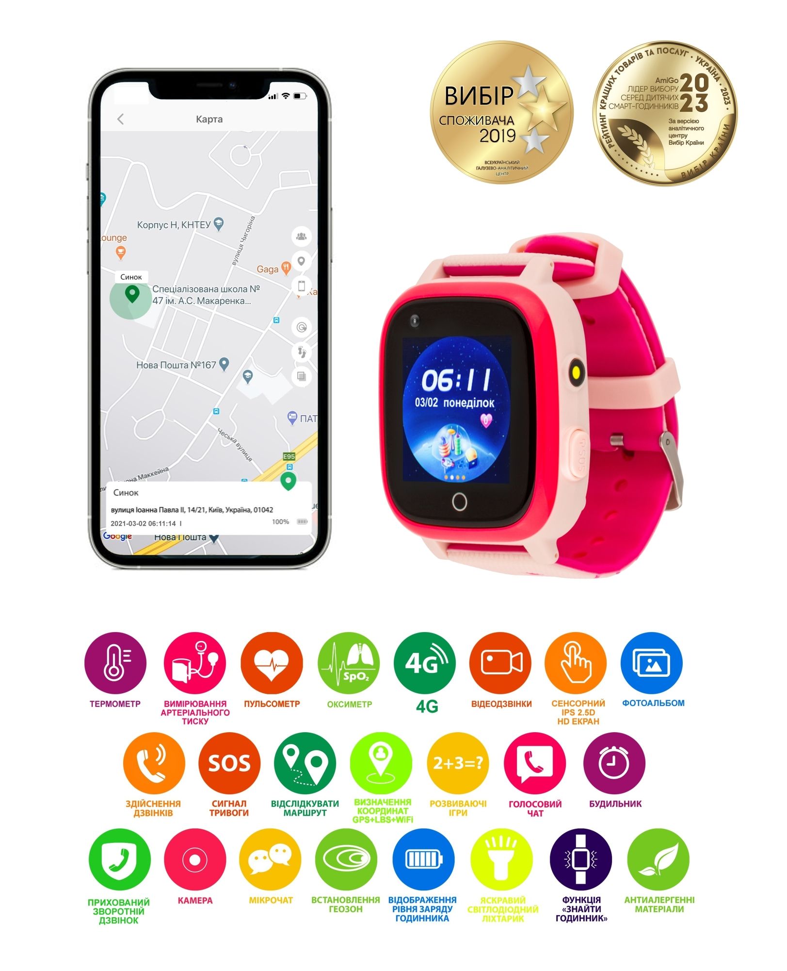 Детские смарт-часы AmiGo GO005 Thermometer 4G WIFI Pink UA UCRF