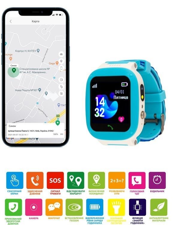 AmiGo GO004 Splashproof — то надежные детские смарт-часы с цветным сенсорным дисплеем, камерой, ярким фонариком и возможностью звонков через SIM-карту. Устройство помогает родителям всегда оставаться на связи и контролировать местоположение ребенка, а ребенку — чувствовать себя самостоятельным и в безопасности. Эти смарт-часы сертифицированы UA UCRF и официально допущены к использованию на территории Украины.