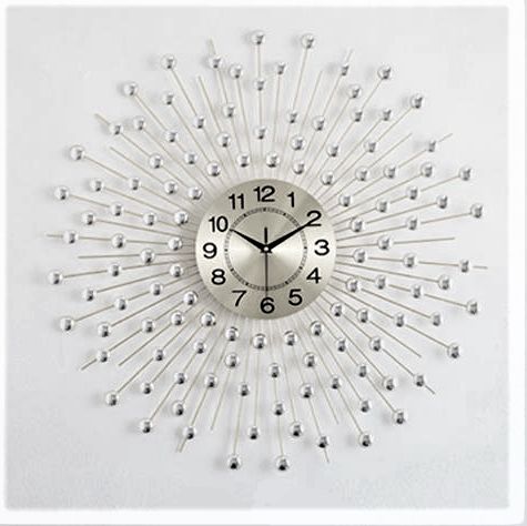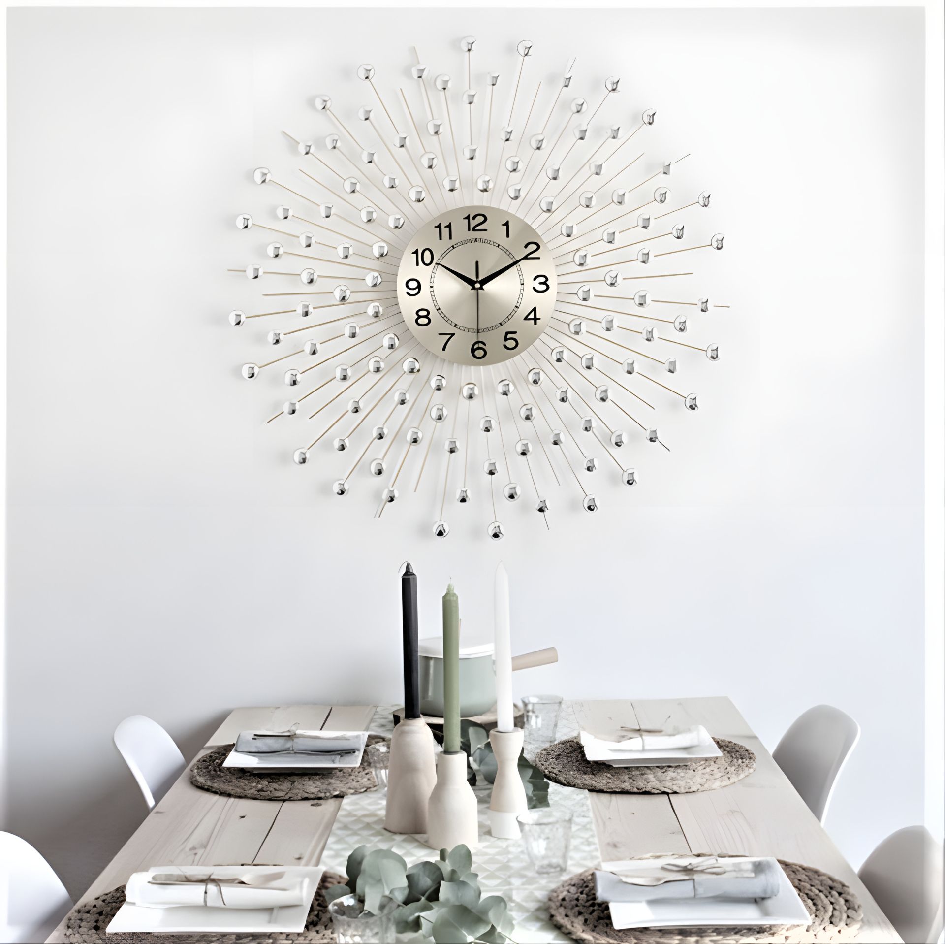 Очень красивые большие настенные часы, которые станут необычным украшением вашей комнаты. Бесшумный механизм позволяет разместить эти часы на стене в спальне. Благодаря эстетическому дизайну и благородно мерцающим стразам они будут одним из центральных элементов декора вашего дома.
