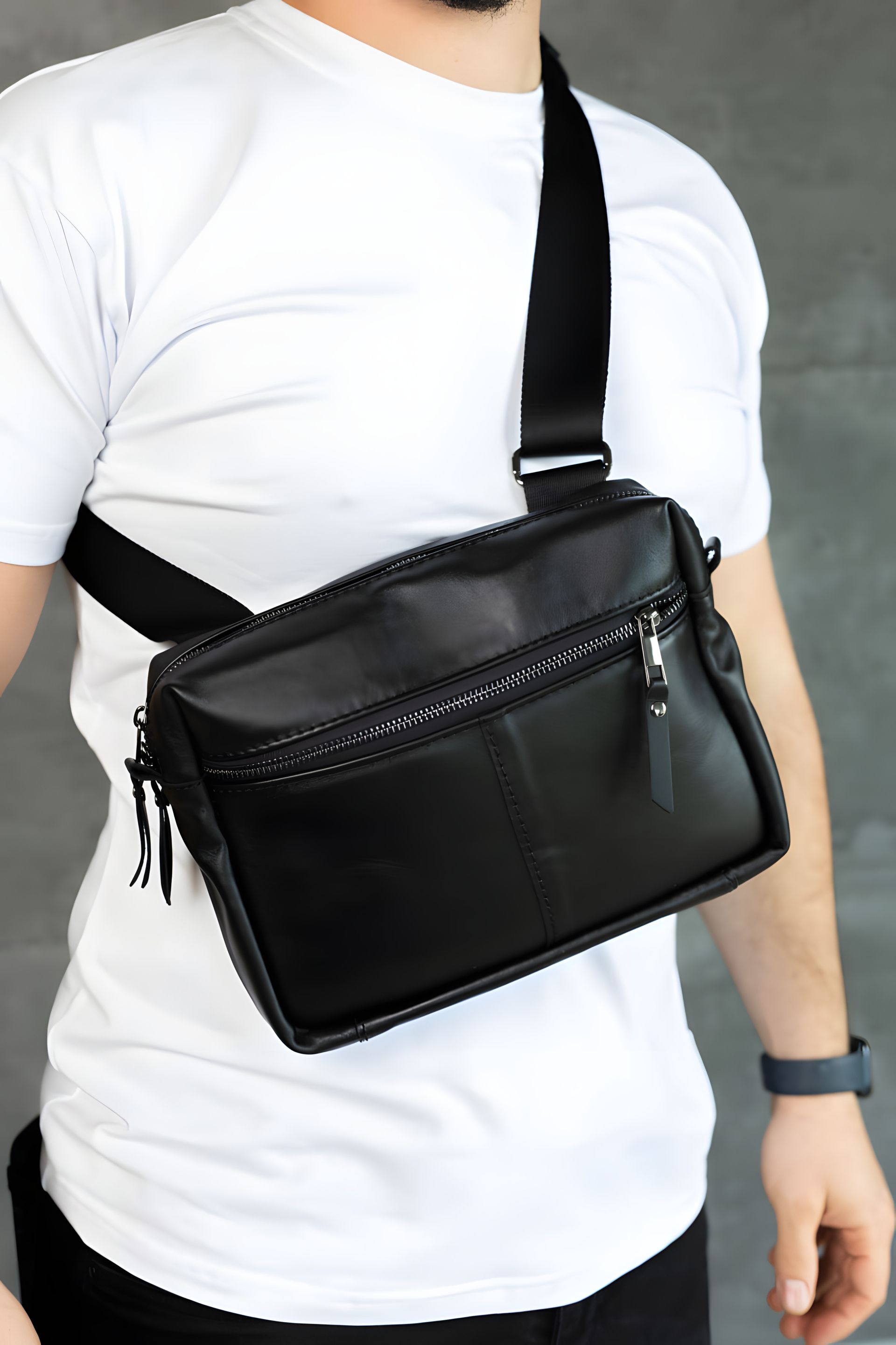Стильна та функціональна сумка SKILL виготовлена з натуральної гладкої шкіри преміум якості. Вона поєднує лаконічний дизайн і продуману ергономіку. Модель зручна у повсякденному використанні: компактна за розміром, але достатньо містка для найнеобхіднішого — телефону, документів, ключів чи гаманця. М’яка шкіра приємна на дотик, тримає форму та з часом лише покращує свій вигляд. Класичний чорний колір додає універсальності — сумка легко поєднується з будь-яким стилем, від casual до smart. СТРУКТУРА: • одне основне відділення на молнії • одна внутрішня кишеня на молнії • одна внутрішня кишеня без застібки • одна кишеня з лицьової сторони на молнії • одна кишеня з тильної сторони на молнії