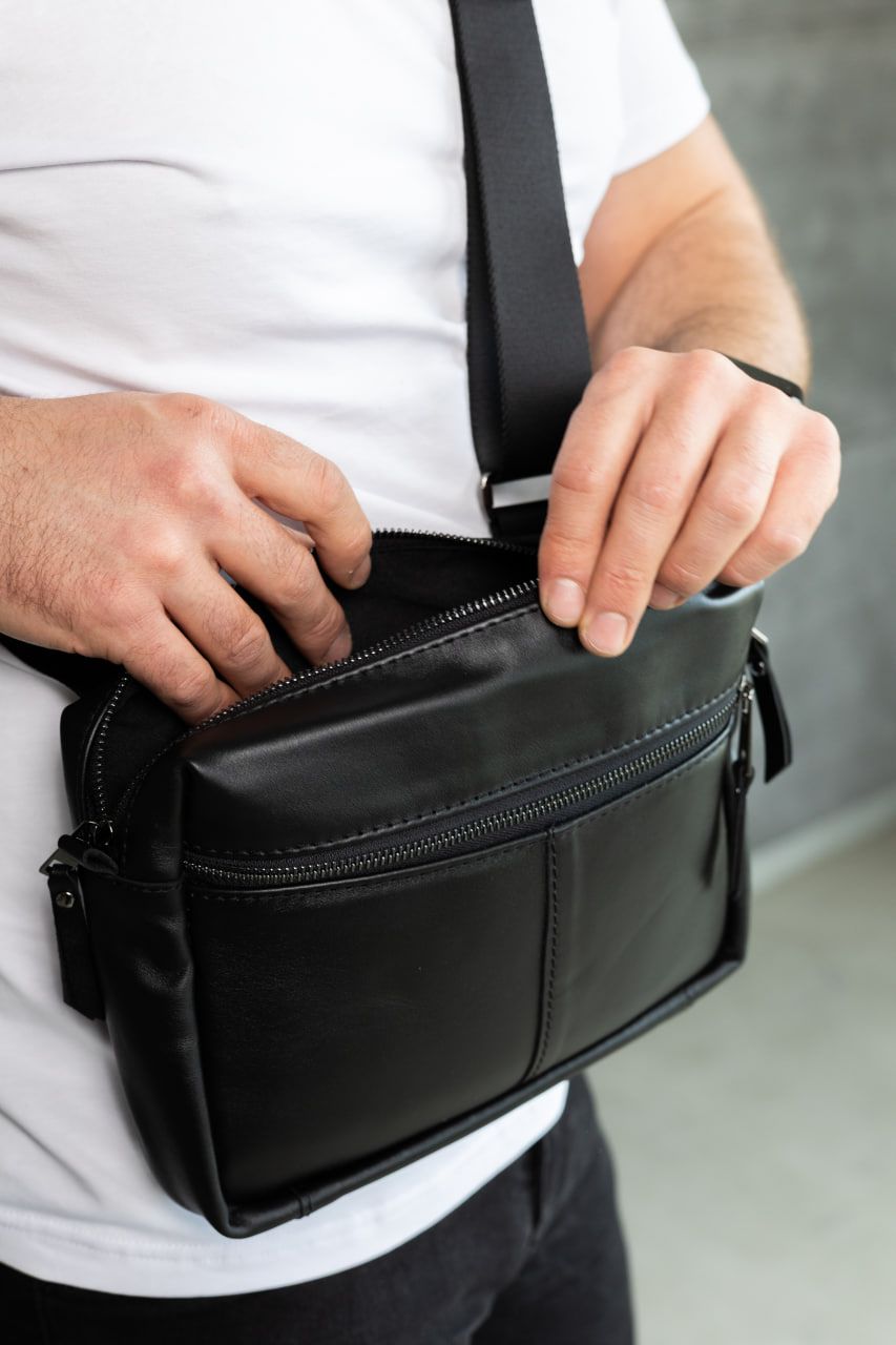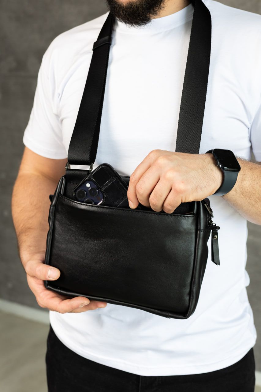 Стильна та функціональна сумка SKILL виготовлена з натуральної гладкої шкіри преміум якості. Вона поєднує лаконічний дизайн і продуману ергономіку. Модель зручна у повсякденному використанні: компактна за розміром, але достатньо містка для найнеобхіднішого — телефону, документів, ключів чи гаманця. М’яка шкіра приємна на дотик, тримає форму та з часом лише покращує свій вигляд. Класичний чорний колір додає універсальності — сумка легко поєднується з будь-яким стилем, від casual до smart.