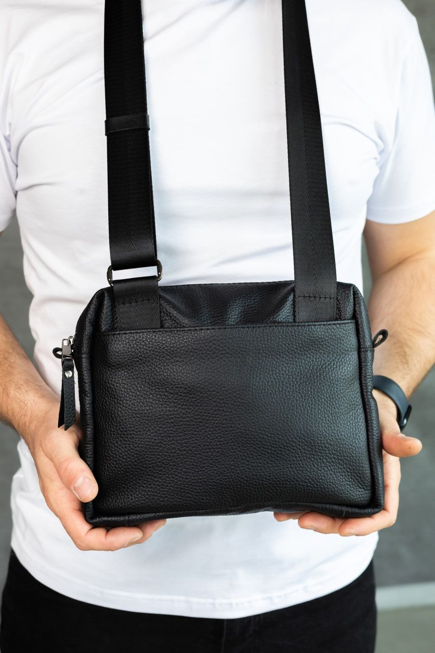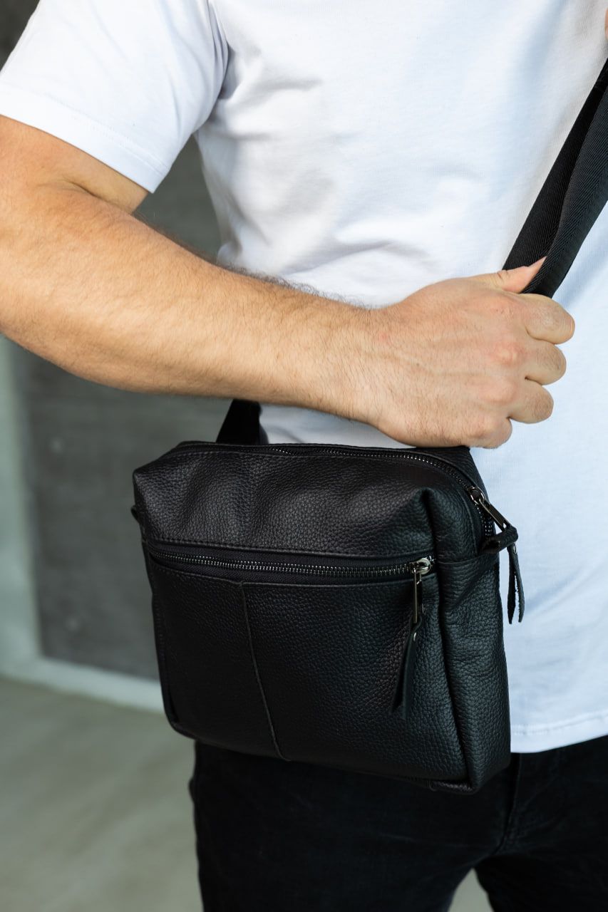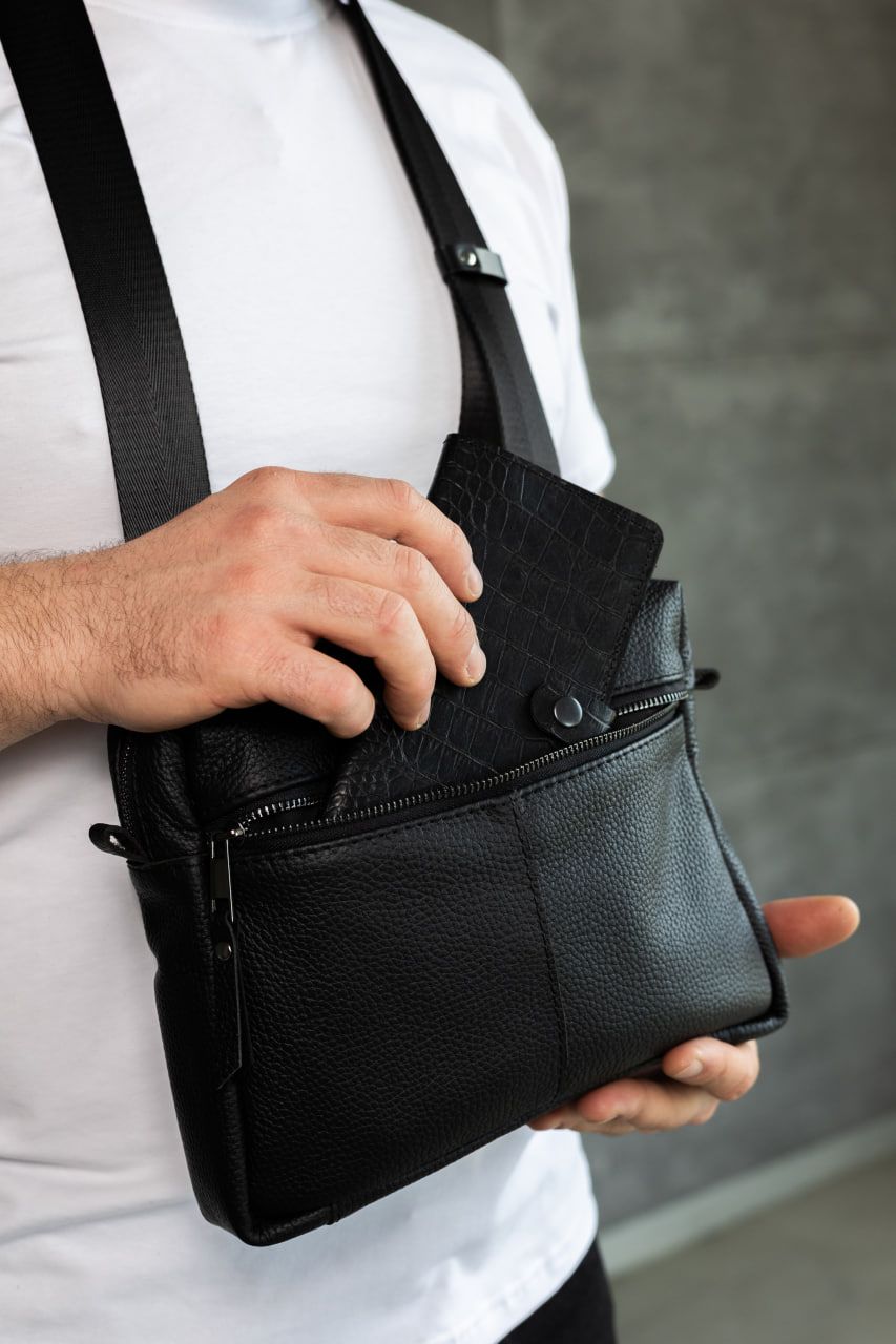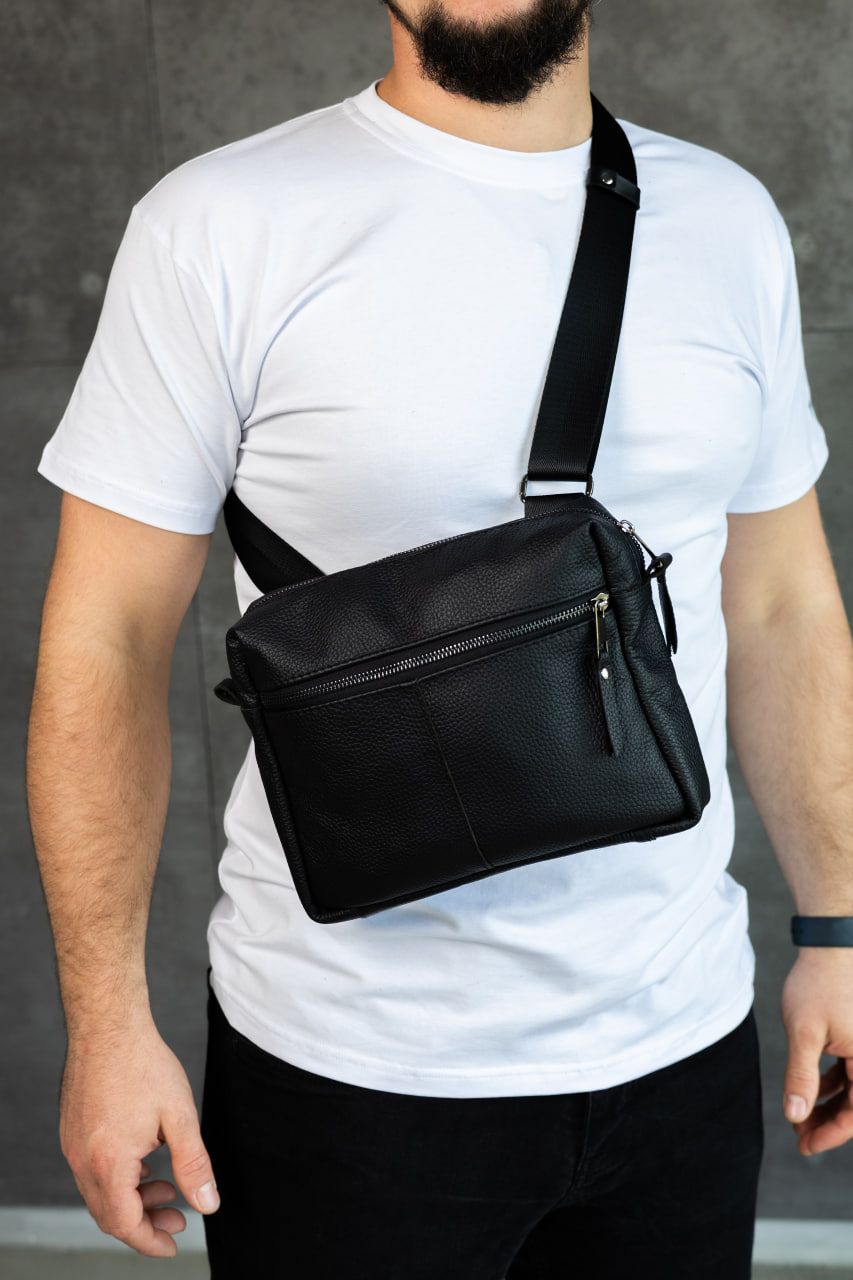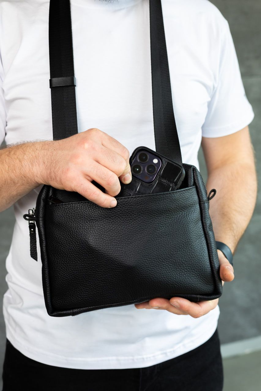 Компактна, але містка: усередині достатньо місця для телефону, ключів, документів та інших дрібниць. Якісна фурнітура, акуратні шви та продумана форма гарантують комфорт і довговічність використання. Класичний чорний колір підкреслює стиль власника й пасує до будь-якого образу — від кежуал до більш стриманого міського стилю.