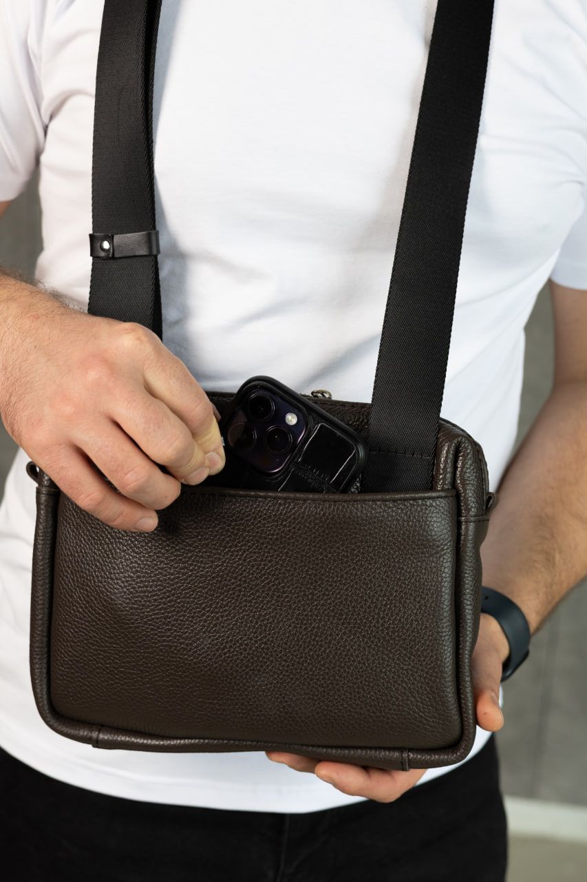 Компактна, але містка: усередині достатньо місця для телефону, ключів, документів та інших дрібниць. Якісна фурнітура, акуратні шви та продумана форма гарантують комфорт і довговічність використання. Класичний чорний колір підкреслює стиль власника й пасує до будь-якого образу — від кежуал до більш стриманого міського стилю.