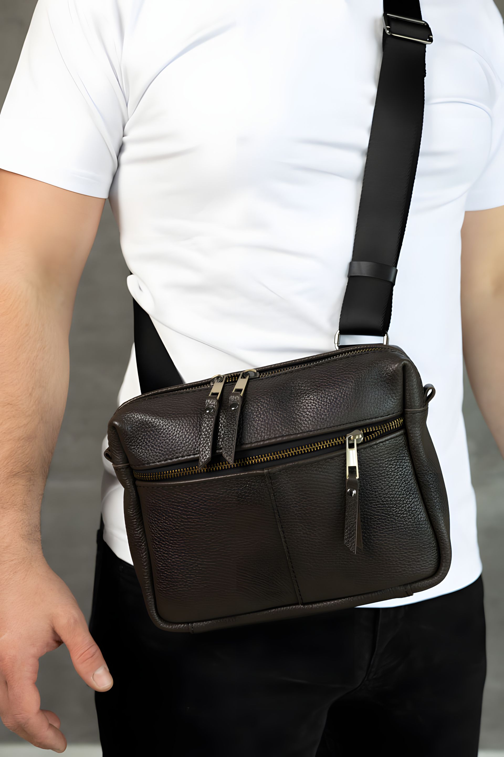 Сумка SKILL — це поєднання мінімалізму, функціональності та преміальної якості. Виготовлена з натуральної зернистої шкіри, вона має приємну текстуру, що не лише ефектно виглядає, а й стійка до подряпин та зношування. Завдяки універсальному дизайну сумку можна носити через плече, що робить її зручною у будь-яких ситуаціях — від прогулянки містом до подорожі. Компактна, але містка: усередині достатньо місця для телефону, ключів, документів та інших дрібниць. Якісна фурнітура, акуратні шви та продумана форма гарантують комфорт і довговічність використання. Класичний чорний колір підкреслює стиль власника й пасує до будь-якого образу — від кежуал до більш стриманого міського стилю. Це не просто аксесуар — це деталь, що формує образ сучасної людини, яка цінує зручність і стиль у кожному русі. СТРУКТУРА: • одне основне відділення на молнії • одна внутрішня кишеня на молнії • одна внутрішня кишеня без застібки • одна кишеня з лицьової сторони на молнії • одна кишеня з тильної сторони на молнії