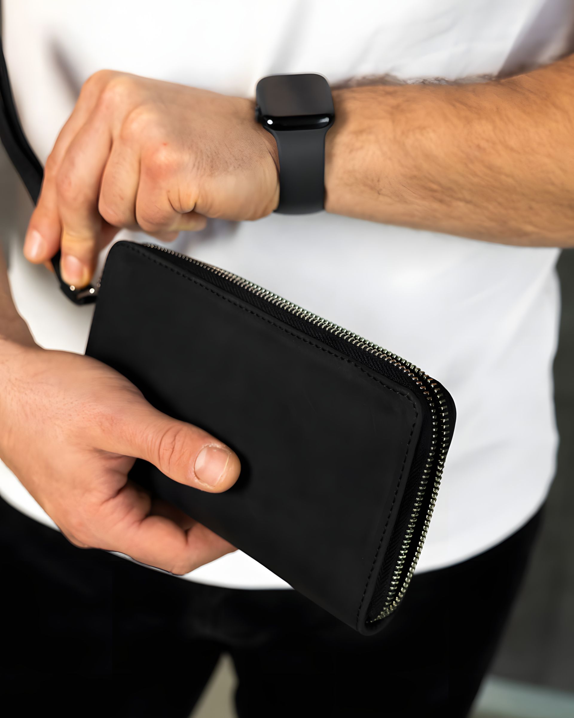 Шкіряний клатч-гаманець чорний із шкіри Crazy Horse, SH028-2