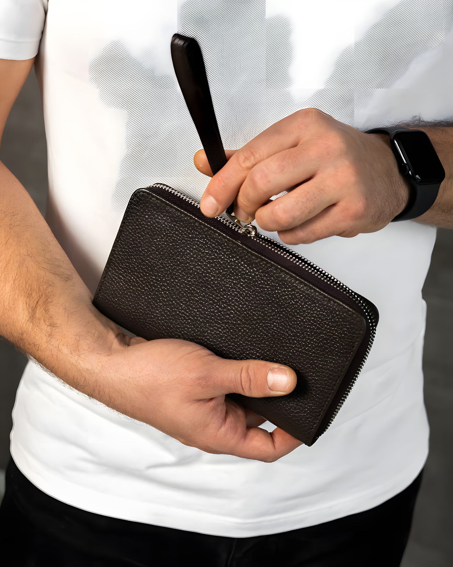 Коричневий чоловічий клатч-гаманець із натуральної зернистої шкіри, SKL-045-2