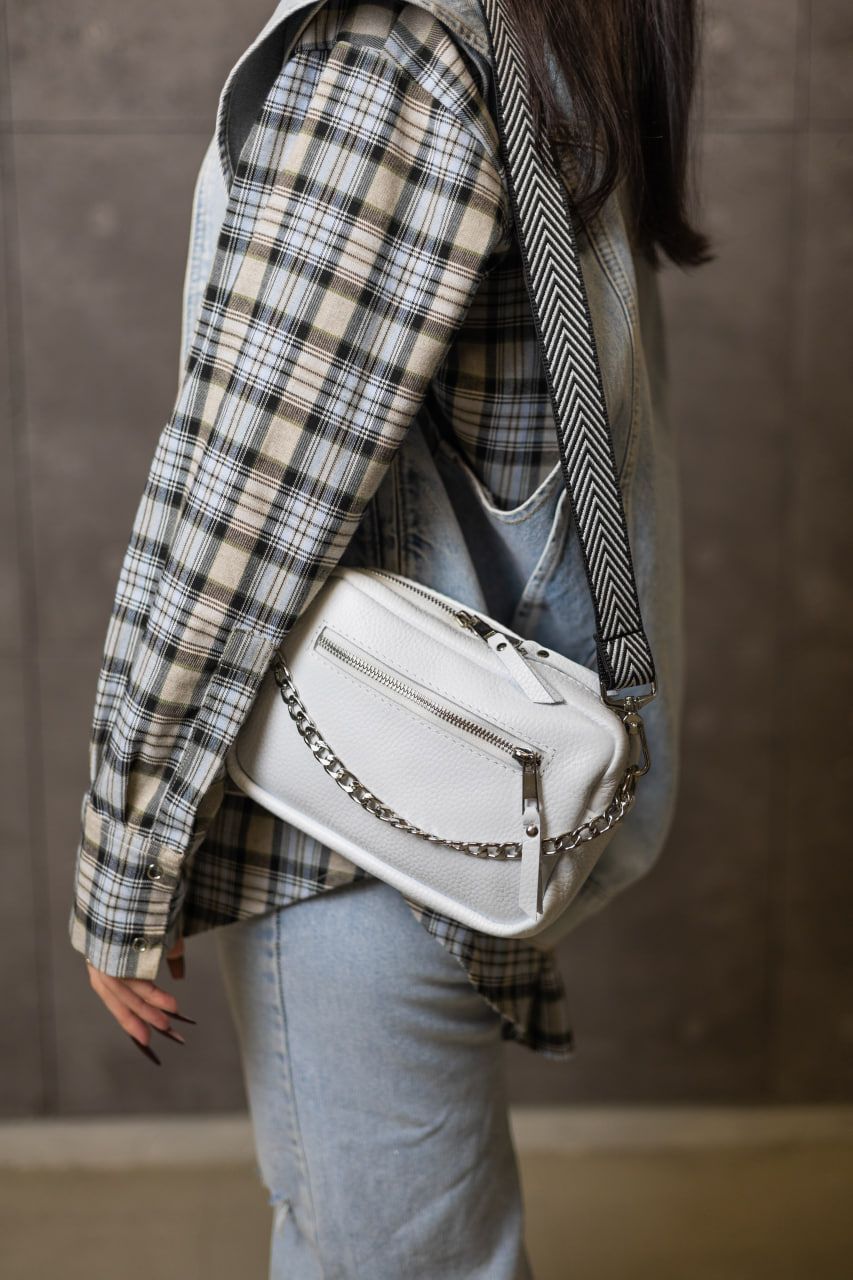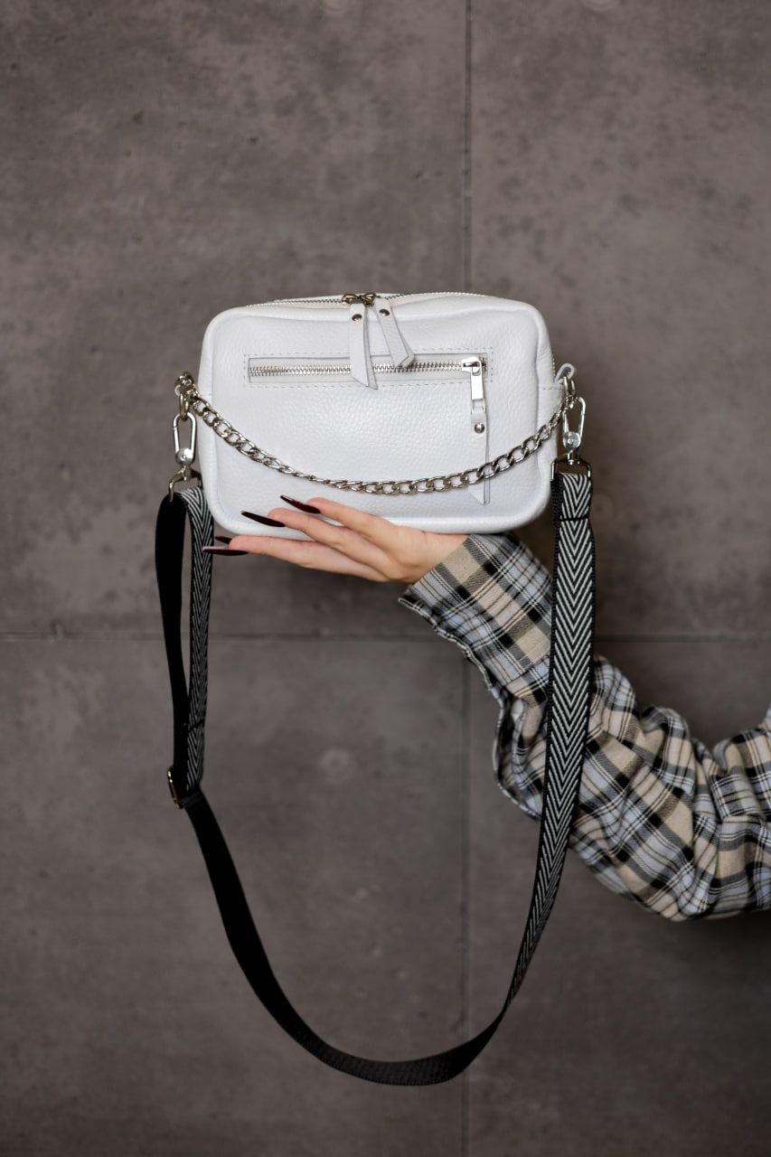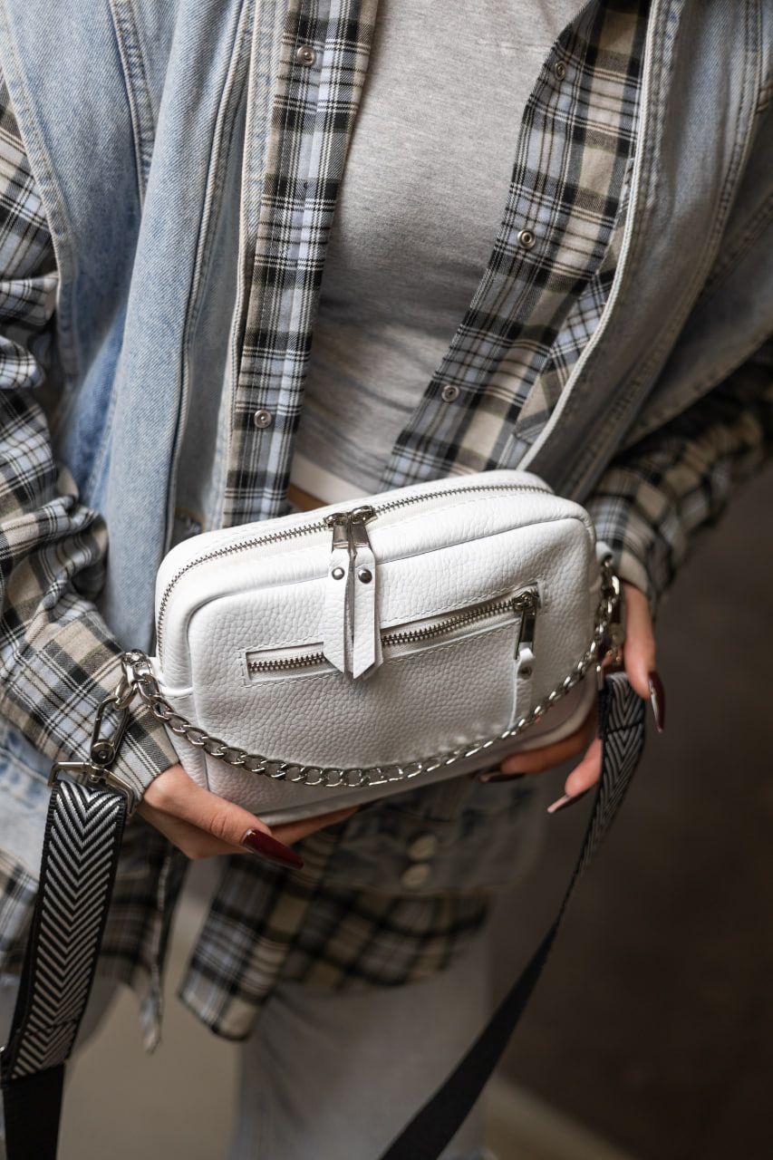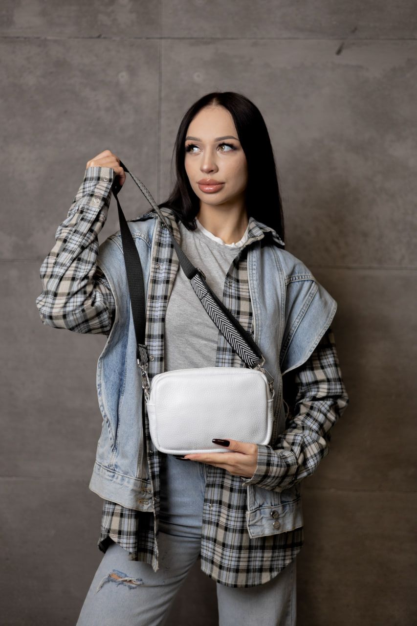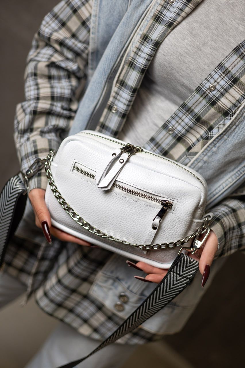 Ніжна, стильна та неймовірно зручна — ця біла крос-боді з натуральної шкіри флотар створена для тих, хто цінує витонченість у простих речах. Завдяки фактурній шкірі, сумка виглядає благородно й сучасно, а білий колір додає образу легкості та свіжості.