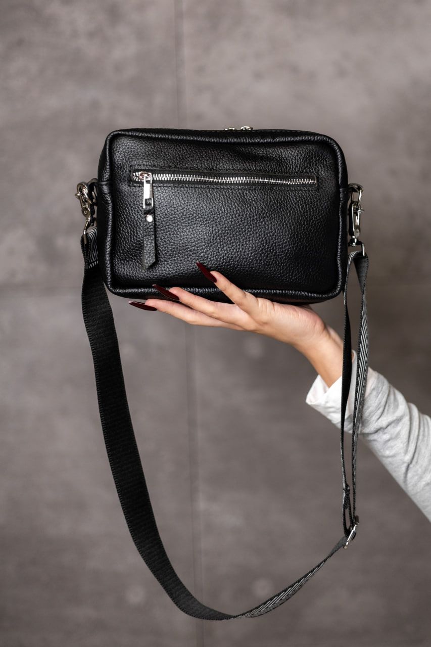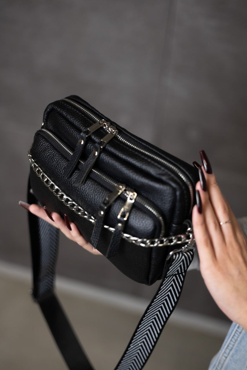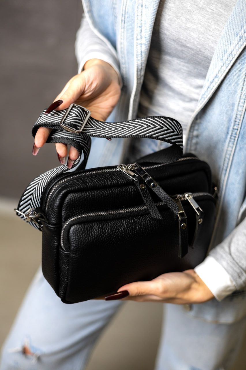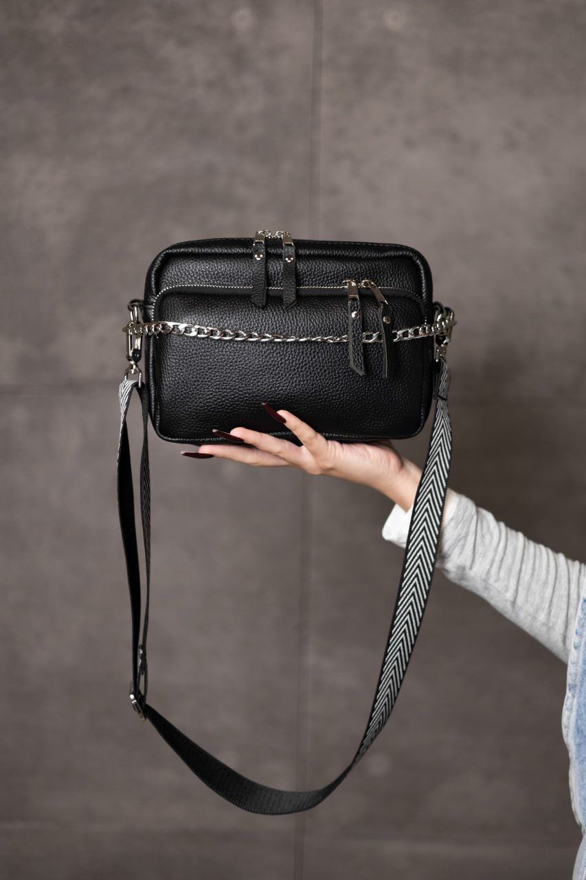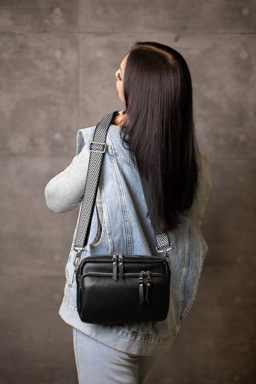 Стриманий шик і щоденна практичність — саме так можна описати цю жіночу сумку крос-боді з натуральної шкіри флотар чорного кольору. Витриманий мінімалізм і зручна форма роблять її універсальним аксесуаром, який легко доповнить як діловий, так і повсякденний образ.