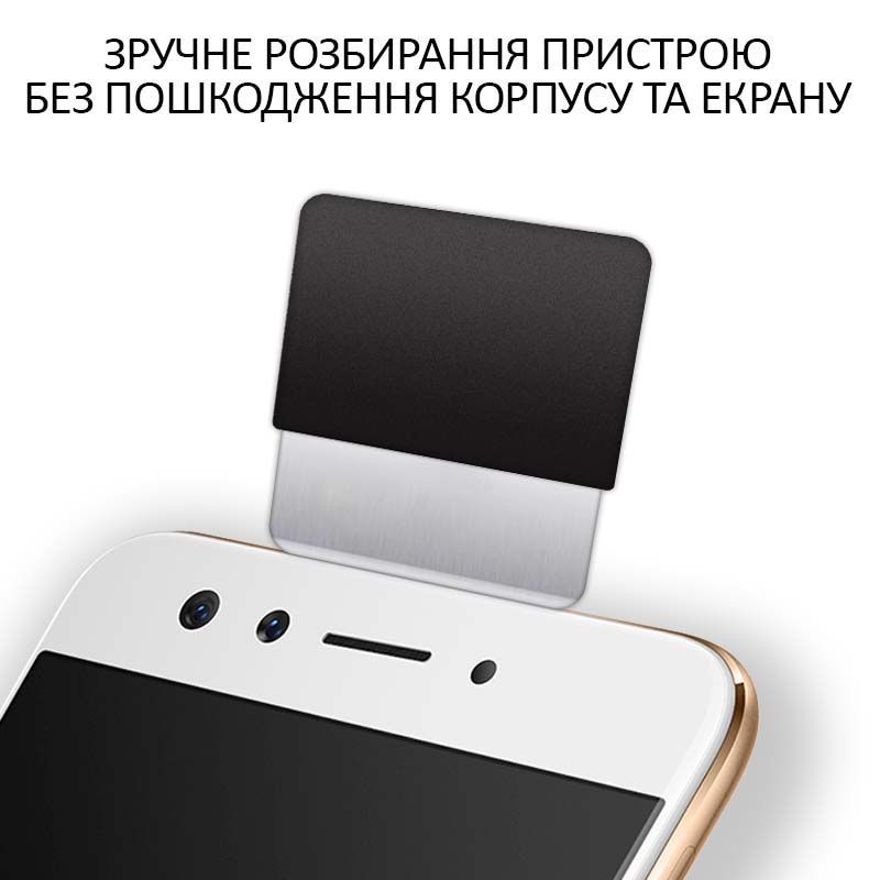 - Толщина лезвия всего 0.15 мм позволяет легко входить в зазор между корпусом и дисплеем, поддевать крышки и элементы, не оставляя следов и не деформируя пластиковые детали.