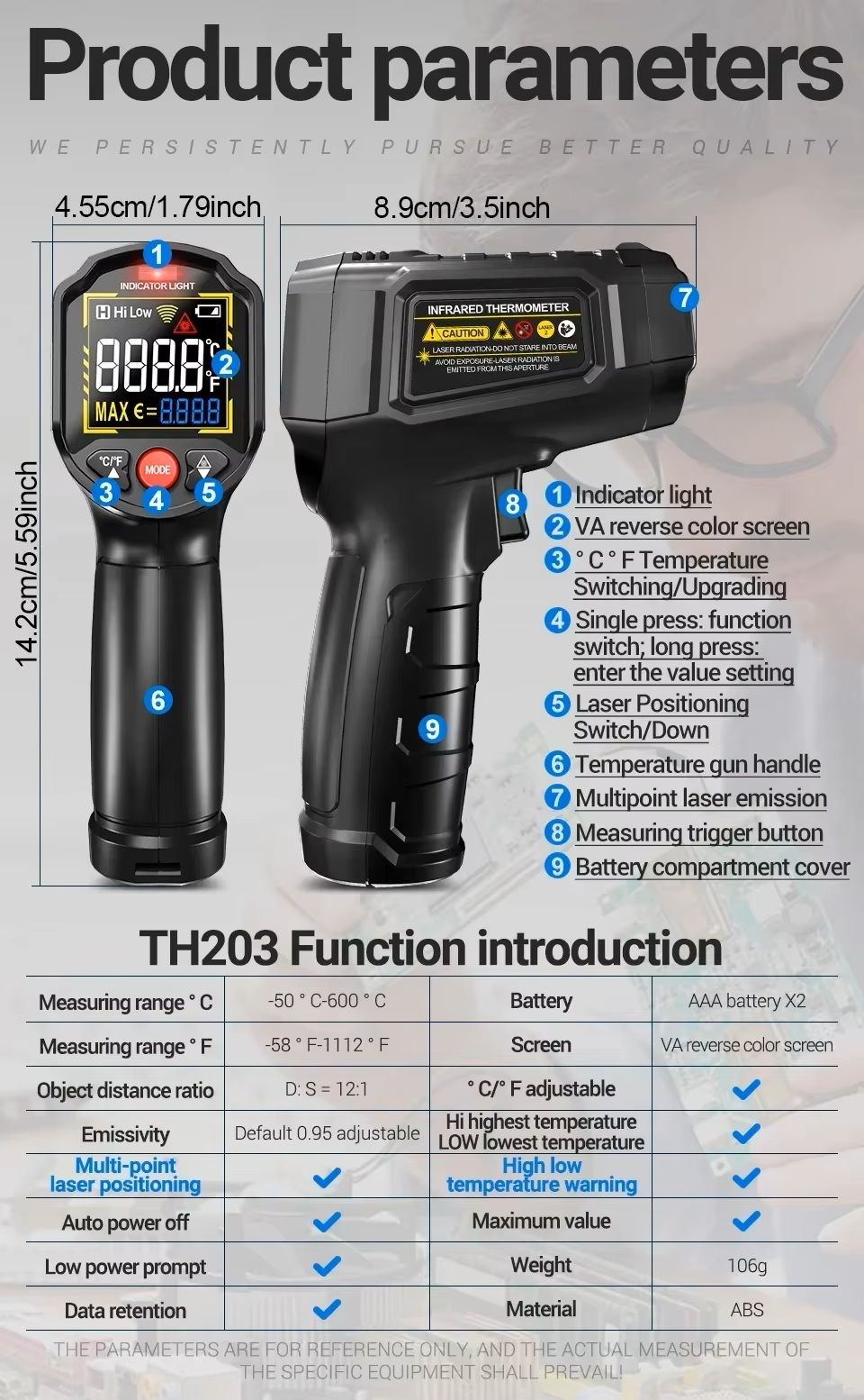 Инфракрасный термометр Aneng TH203 (-50-600℃) black