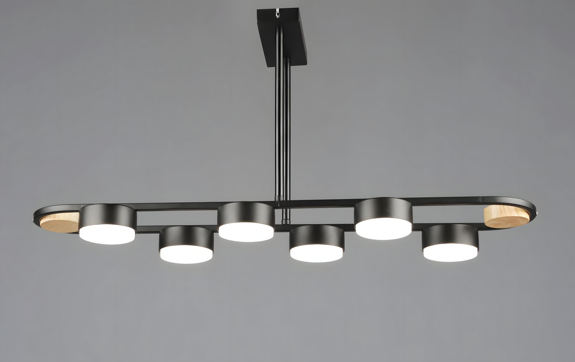 Представляем стильную подвесную люстру VALESO N6720/6 — идеальный выбор для зонирования пространства и создания фокусного освещения над обеденным столом, барной стойкой или рабочей зоной. Дизайн модели гармонично сочетает индустриальный шик и теплоту натуральных материалов.