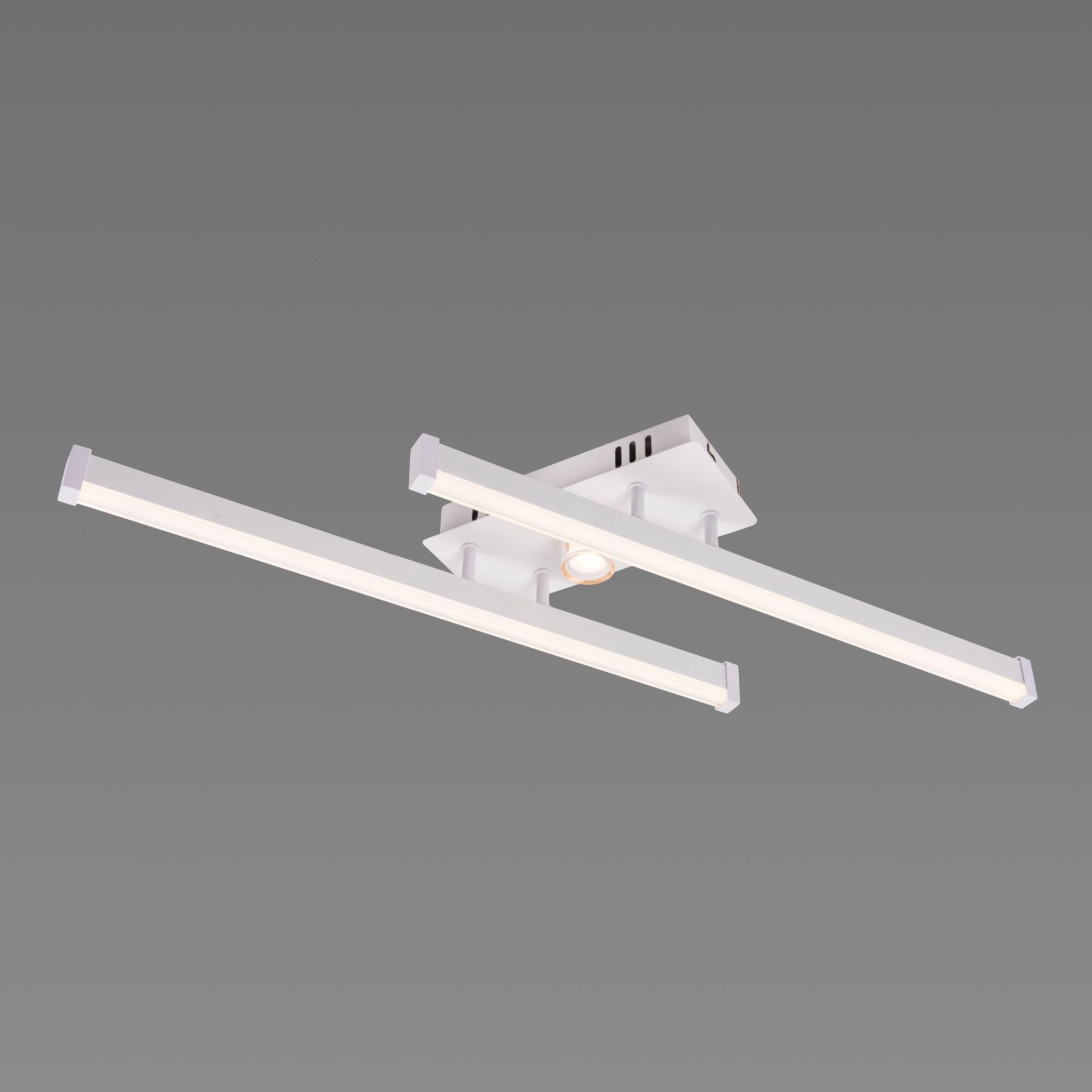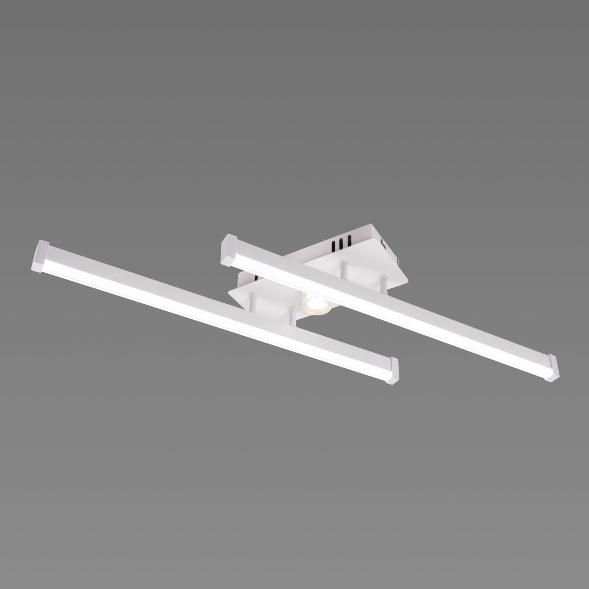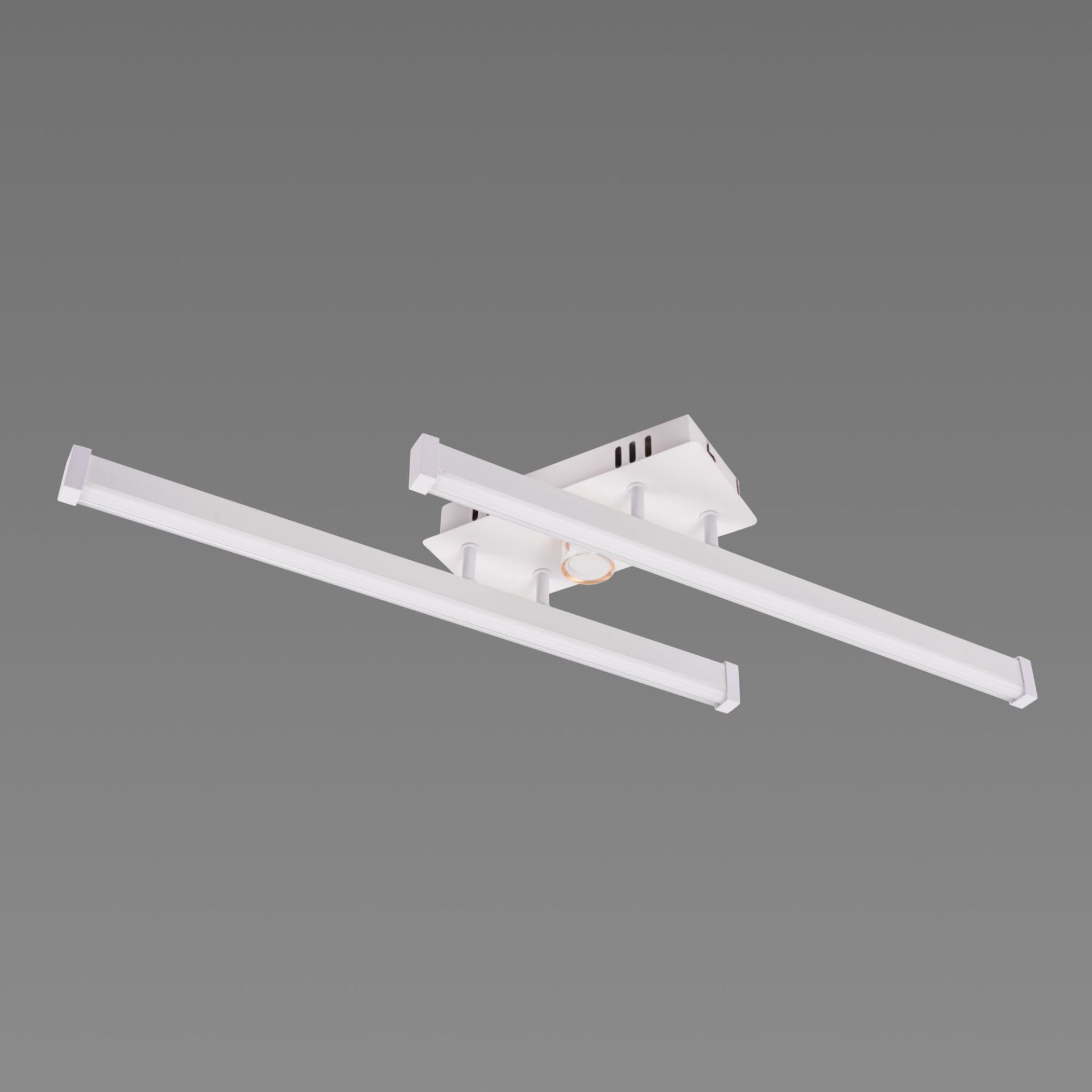 Светильник оснащен 2 встроенными LED-модулями (общая мощность 20W), обеспечивающими мощный световой поток 5500 люменов. Особенность модели — возможность переключения цветовой температуры: 3000K (теплый свет) и 6500K (холодный свет), что позволяет создать нужную атмосферу. Размер изделия: длина 560 мм, ширина 475 мм, высота 110 мм. Благодаря небольшой высоте, эта люстра идеально подходит для комнат со стандартными или низкими потолками.
