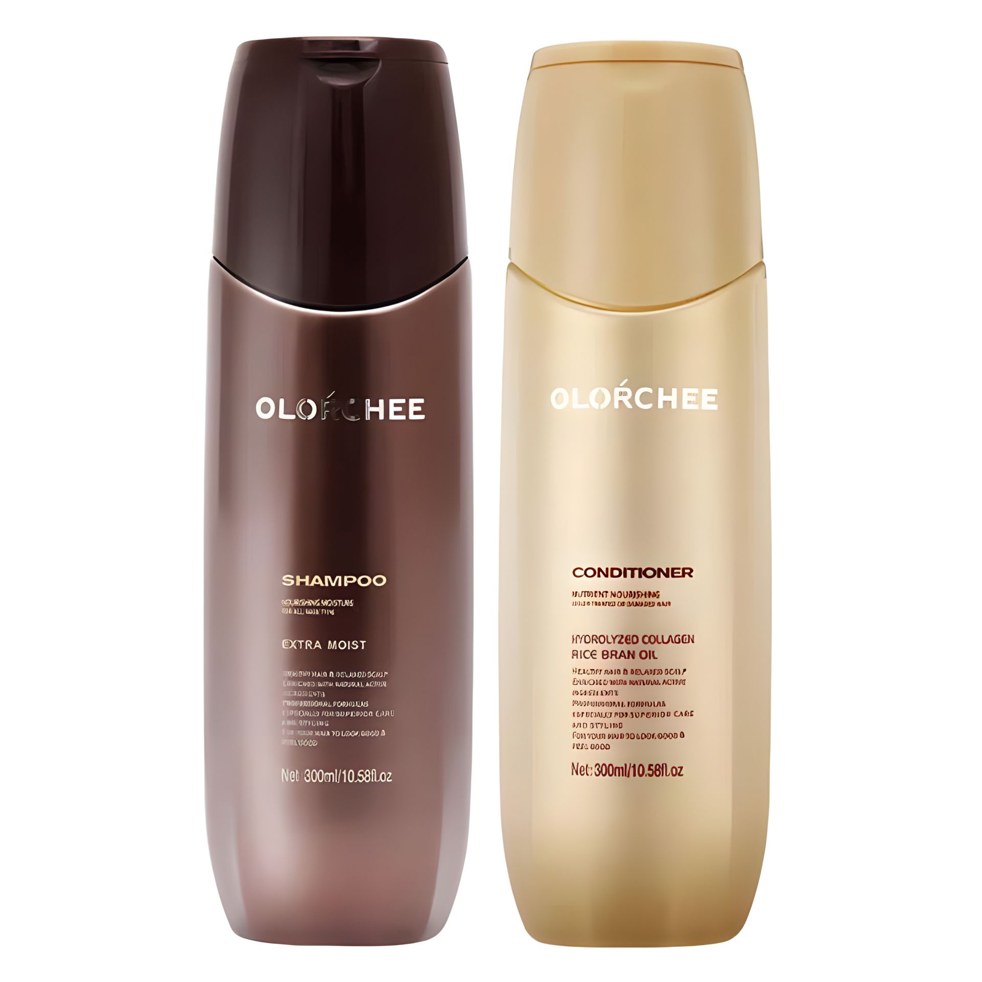 При регулярном использовании набора Olorchee Nourshing Moisture DUO волосы становятся заметно более мягкими, гладкими и послушными по всей длине, снижается ломкость и сухость, улучшается общее состояние полотна волос. Шампунь Olorchee Nourshing Moisture Extra Moist Shampoo помогает очистить кожу головы и волосы, сохраняя их влагу, а кондиционер Olorchee Nutrient Nourishing Conditioner с гидролизованным коллагеном и рисовым маслом улучшает текстуру волос, делает их более плотными на ощупь и придает естественный блеск.