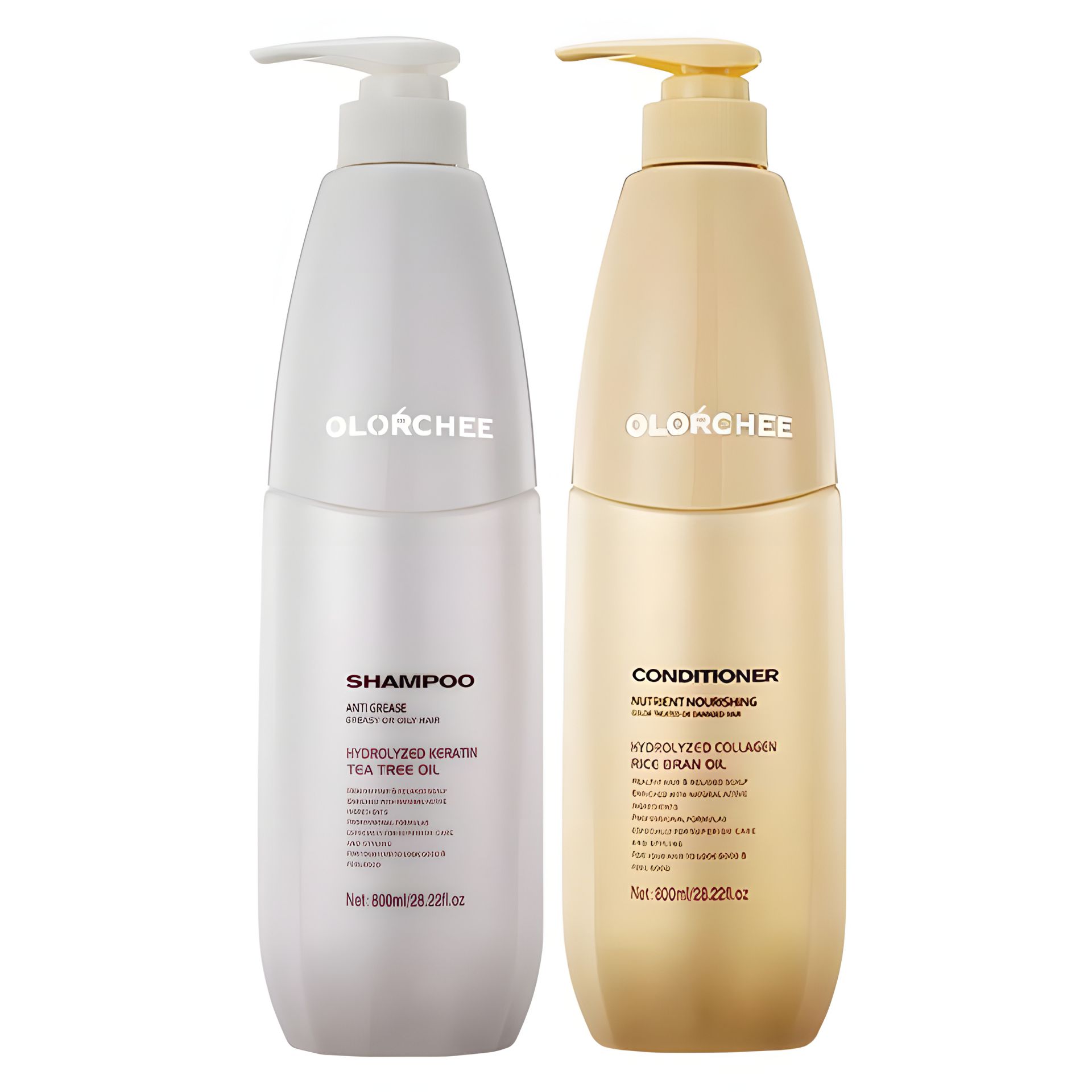 Набор Olorchee Anti Grease DUO шампунь и кондиционер предназначен для ухода за жирными волосами и кожей головы, склонной к избыточному салоотделению и частым загрязнениям. Шампунь Olorchee Anti Grease Shampoo с маслом чайного дерева и гидролизованным кератином глубоко очищает, уменьшает жирность и освежает кожу головы, а кондиционер Olorchee Nutrient Nourishing Conditioner восстанавливает поврежденные участки волос, делает полотно более гладким и эластичным. Подходит для регулярного использования при жирной или комбинированной коже головы и ослабленных по длине волосах.