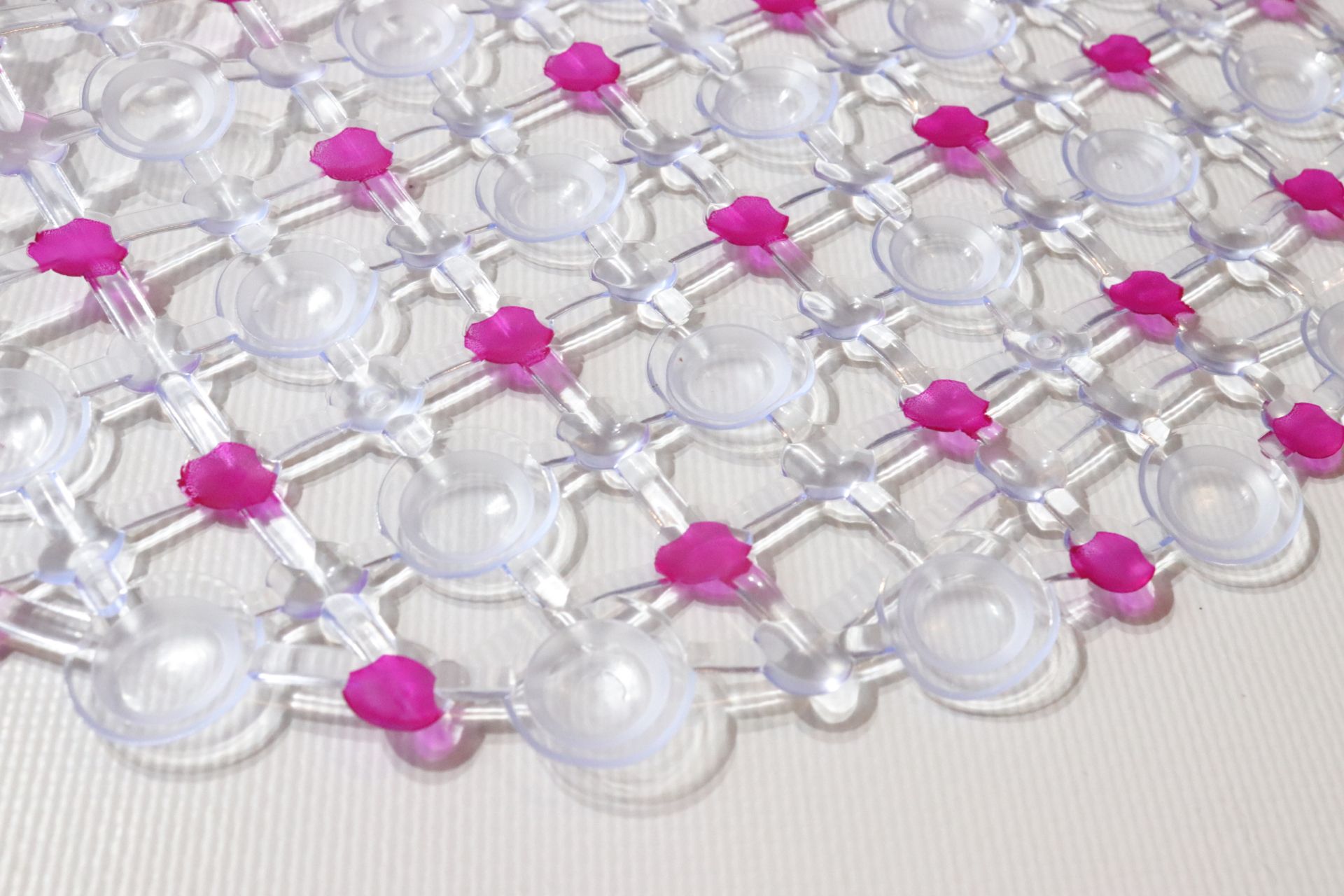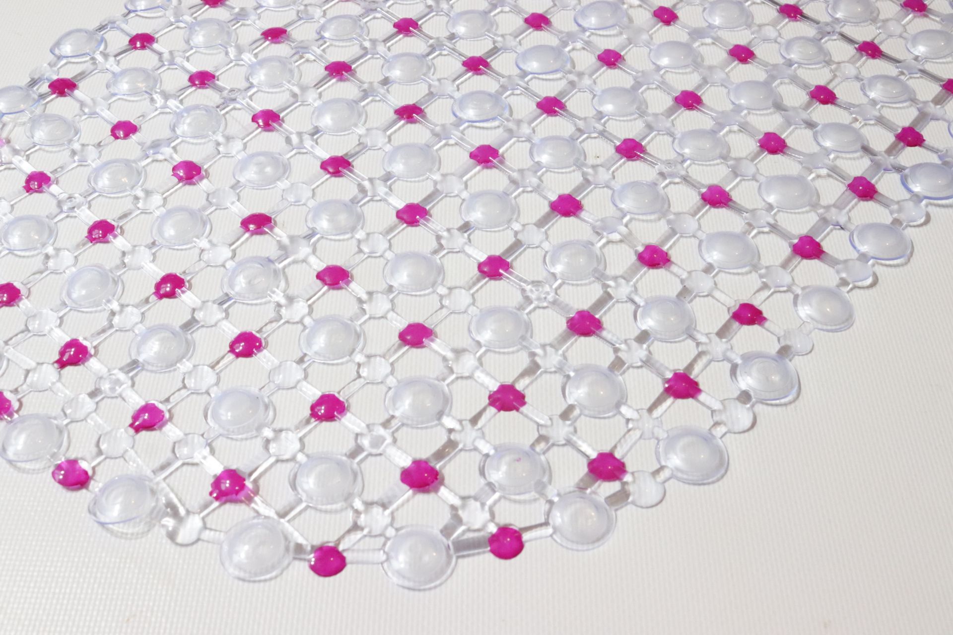 Силиконовый коврик в ванну изготовлен из эластичной резины в форме «сот». На нижней стороне имеется множество присосок, обеспечивающих противоскользящий эффект. Предназначен для использования внутри ванн, душевых кабин и т. д.