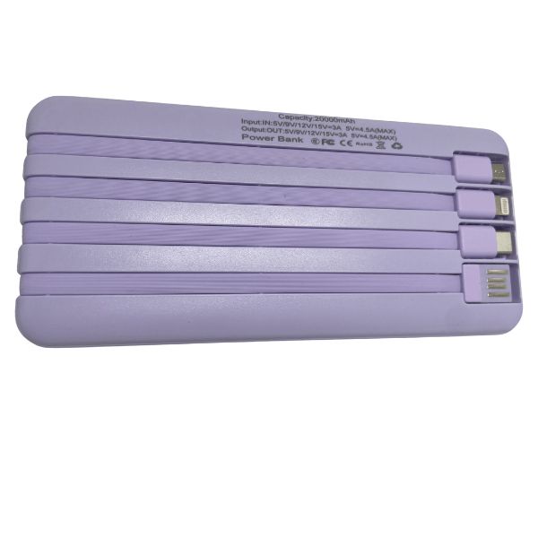 Power Bank 20000 мАч 66Вт с четырьмя встроенными кабелями и быстрой зарядкой PD/QC (JM-803) Сиреневый
