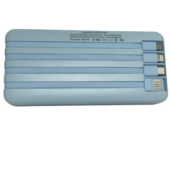 Powerbank 20000 мАч 66Вт – современное мощное решение., созданный для максимально быстрой и комфортной зарядки любых устройств. Модель оснащена четыре встроенных кабеля, поэтому вам больше не нужно брать с собой провода.