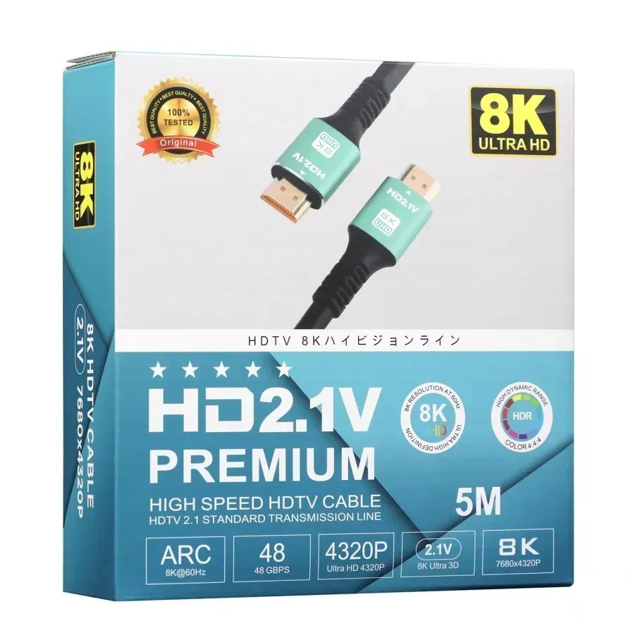 Кабель HDMI- HDMI 2.1V 5m 8K 120 fps Черный