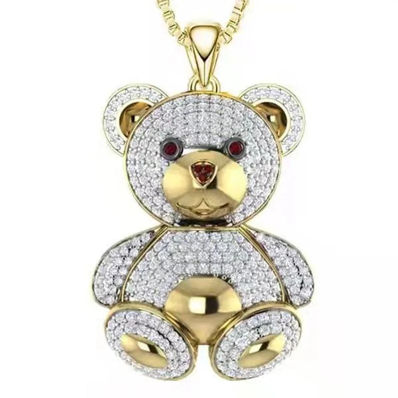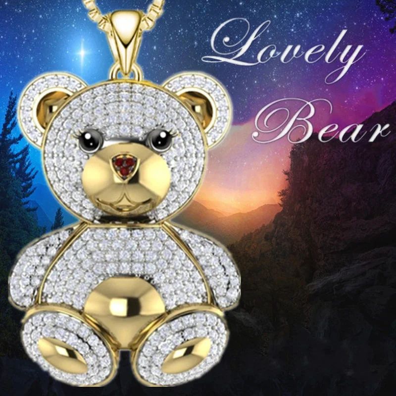 Кулон милый медведь с белыми кристаллами подвеска мишка