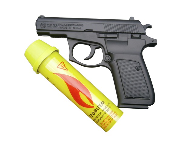 Зажигалка пистолет CZ 83 черная металлическая + газовый баллон 80 мл