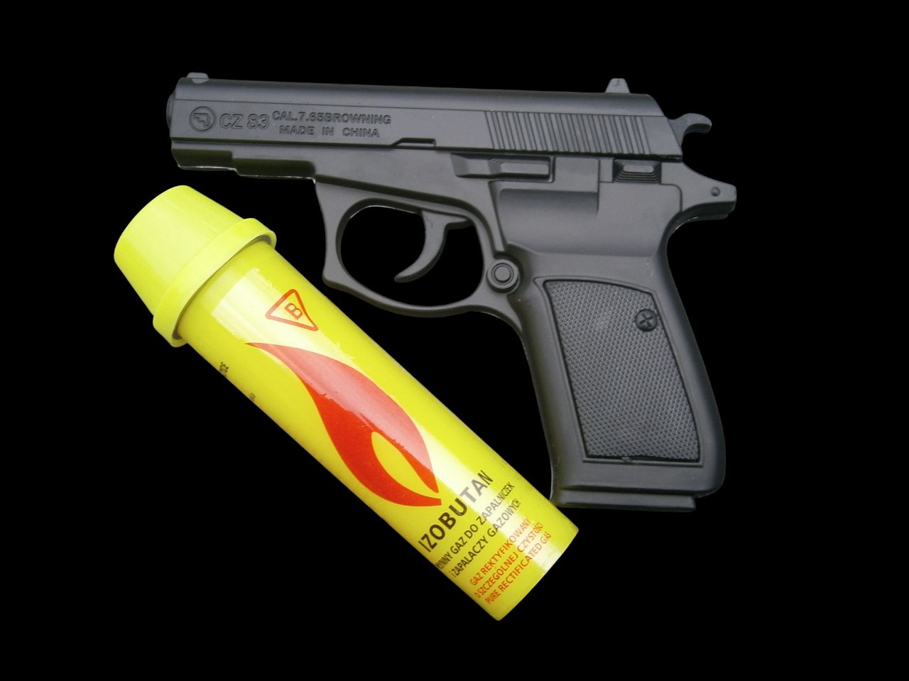 Зажигалка пистолет CZ 83 черная металлическая + газовый баллон 80 мл