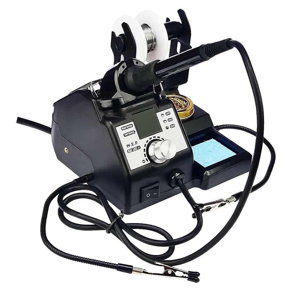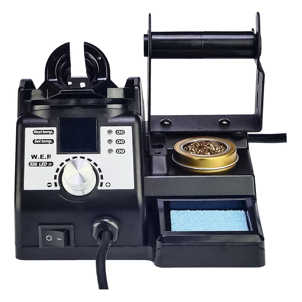 Паяльная станция WEP 926 LED-IV – это многофункциональный комплекс для точной пайки, объединяющий в одном корпусе паяльник с цифровым управлением, лупу с подсветкой, держатели плат и катушки припоя, а также полноценное рабочее место с очисткой жала. Подходит для ремонта смартфонов, компьютерной техники, аудио- и видеоустройств, изготовления и обслуживания различных электронных схем дома и в сервисном центре.