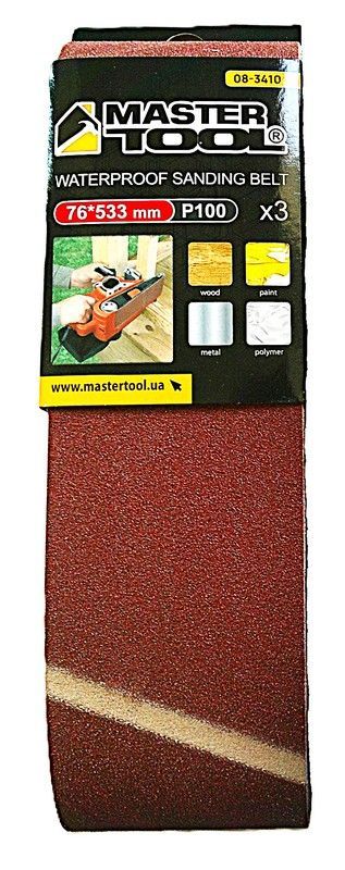 Шлифовальная лента зерно 100 76×533 мм 3 шт MASTERTOOL 08-3410