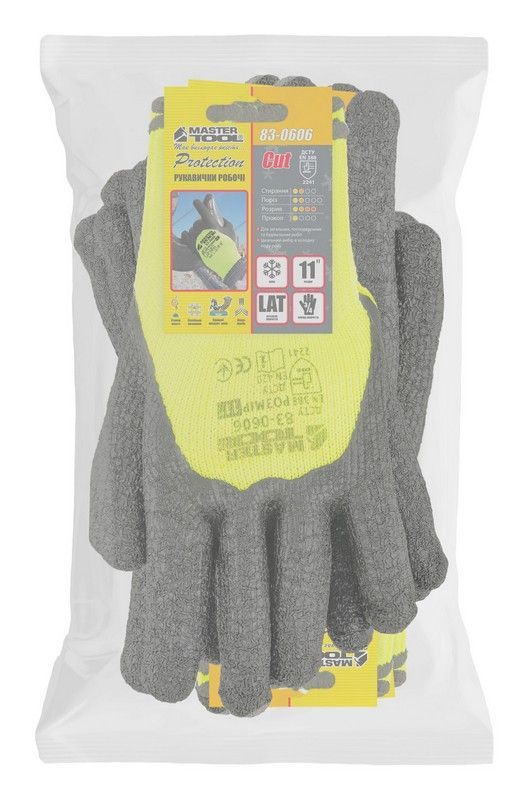 Перчатки акриловые утепленные с морщинистым латексным покрытием ¾ 11" 12 пар неоново-черные MASTERTOOL 83-0606doz