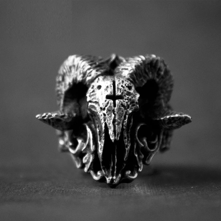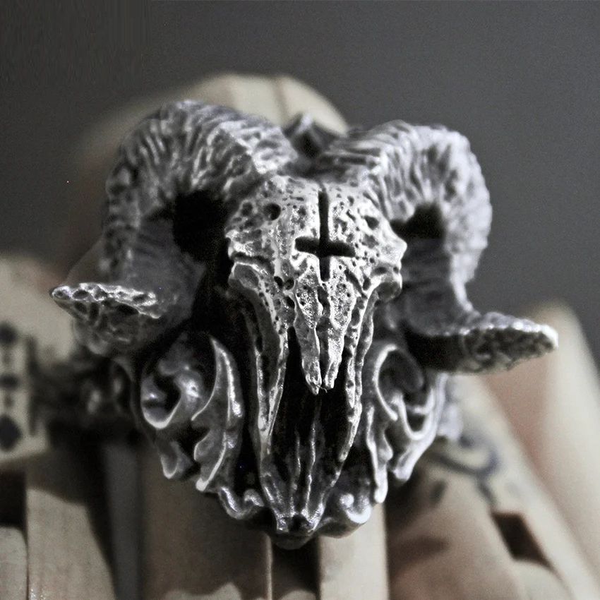 Кольцо дьявол череп козла бафомет с черепом овцы
