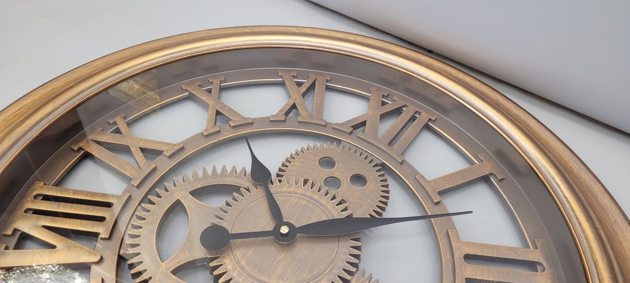 Настенные бесшумные часы (35,2 см) с открытым механизмом в винтажном стиле - OV-0039 В наличии