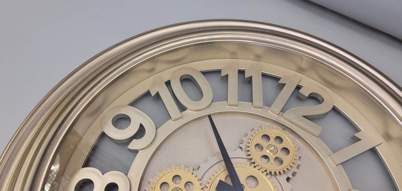 Бесшумные настенные часы (50,5 см) с открытым механизмом шестеренками OV-0087 В наличии