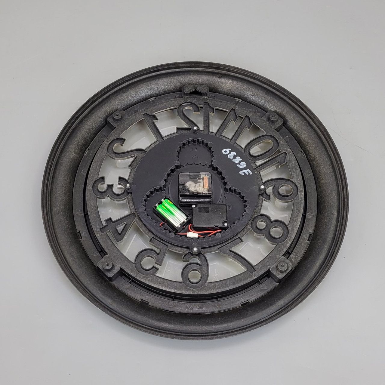 Диаметр: 50,7 см Толщина: 5,2 см Вес: 1,200 кг Материал: стекло, пластик Декоративные шестерни, самостоятельно вращающиеся через дополнительные батареи. Механизм: кварцевое Питание: батарейка АА Гарантия: 12 месяцев