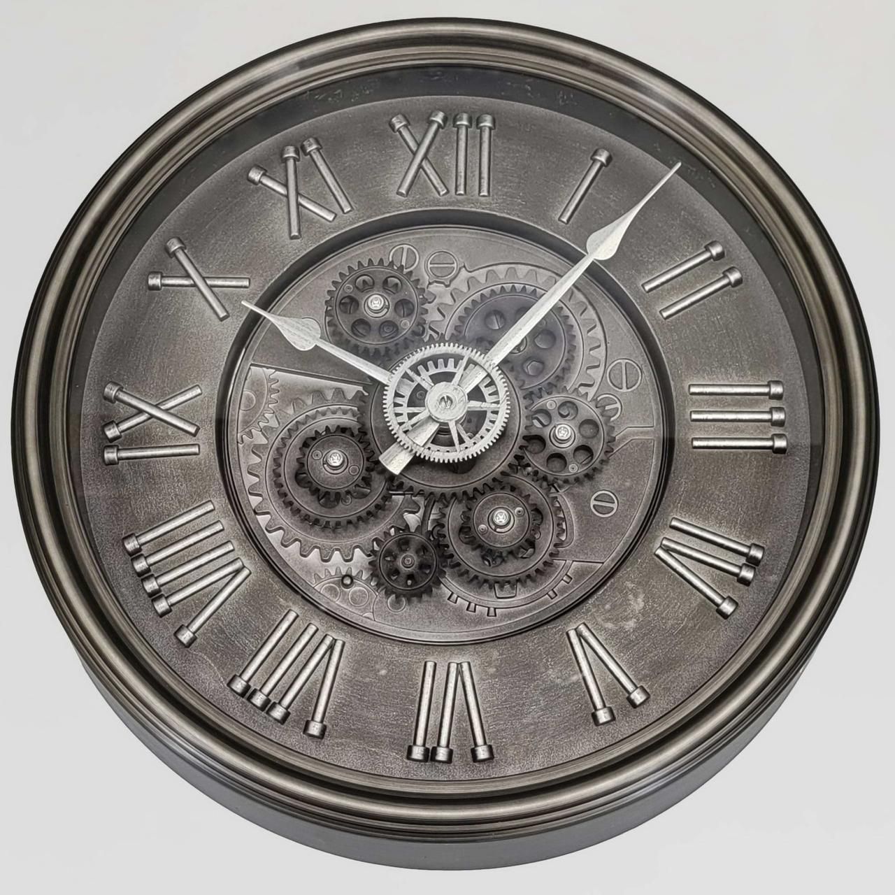 Диаметр: 36,3 см Толщина: 7,5 см Вес: 0,970 кг Материал: стекло, пластик Декоративные шестерни, самостоятельно вращающиеся через дополнительные батареи. Механизм: кварцевое Питание: батарейка АА Гарантия: 12 месяцев