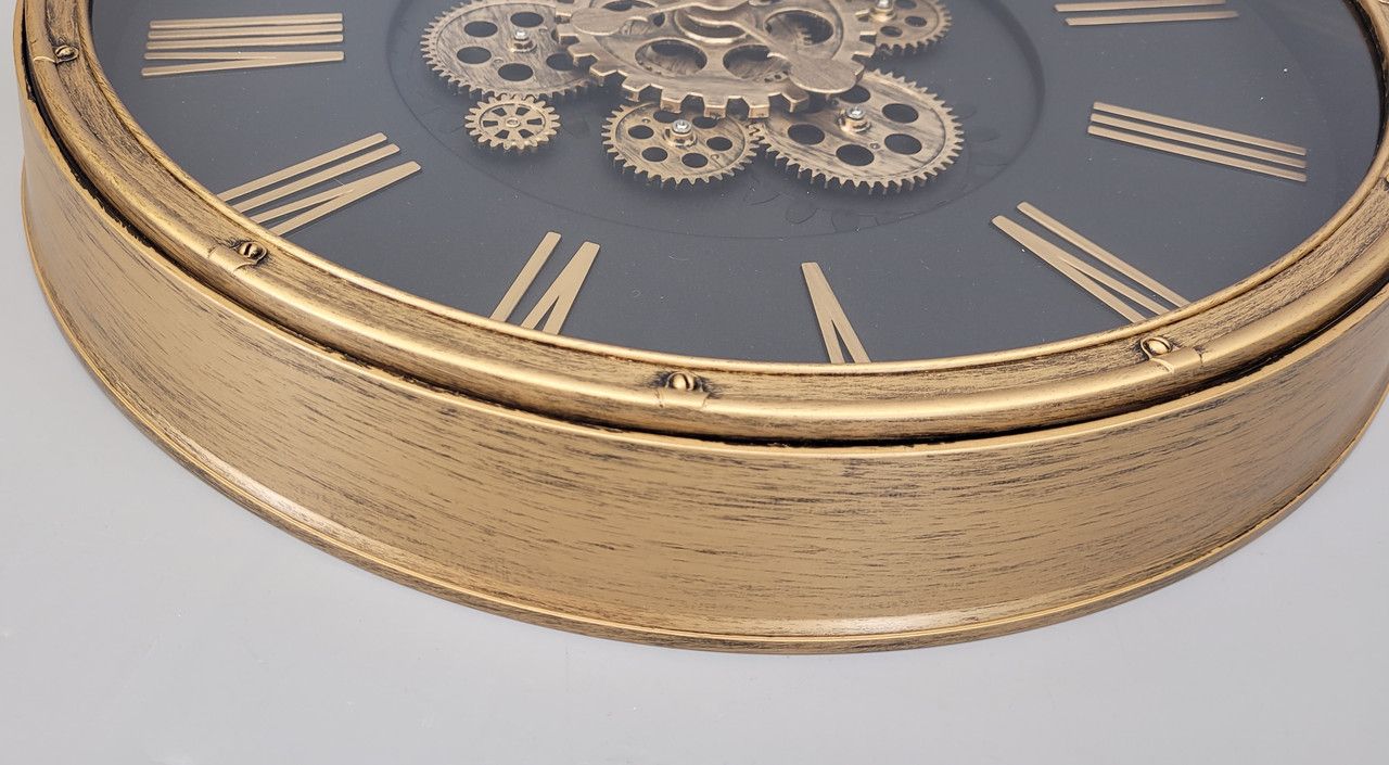 Настенные бесшумные часы (35,2 см) с открытым механизмом в винтажном стиле - OV-0039 В наличии