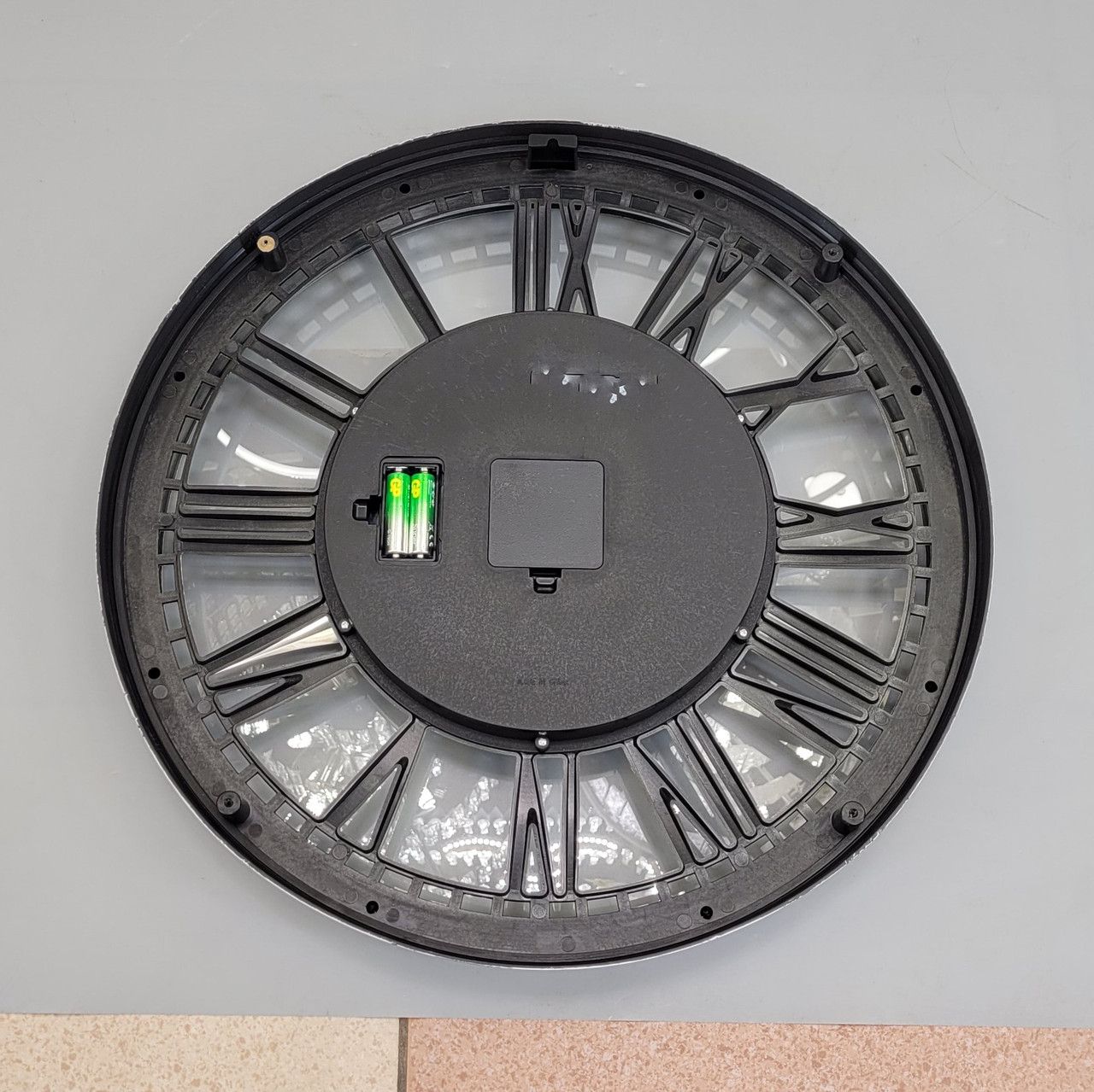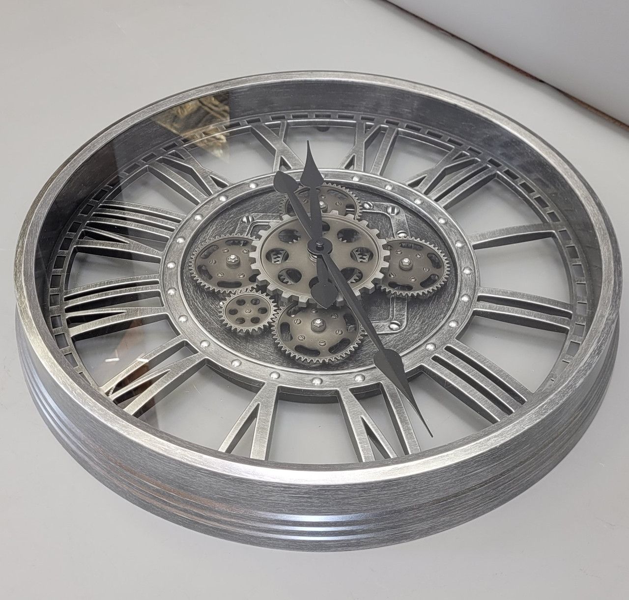 Диаметр: 50,7 см Толщина: 6,8 см Вес: 1,960 кг Материал: стекло, пластик Декоративные шестерни, самостоятельно вращающиеся через дополнительные батареи. Механизм: кварцевое Питание: батарейка АА Гарантия: 12 месяцев