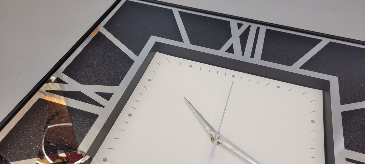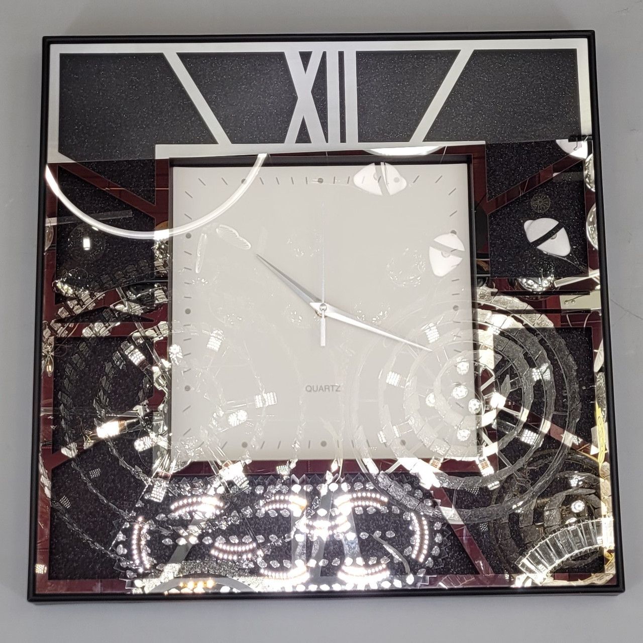 Часы зеркальные с блестками бесшумные (47,8 см) настенные OV-0097