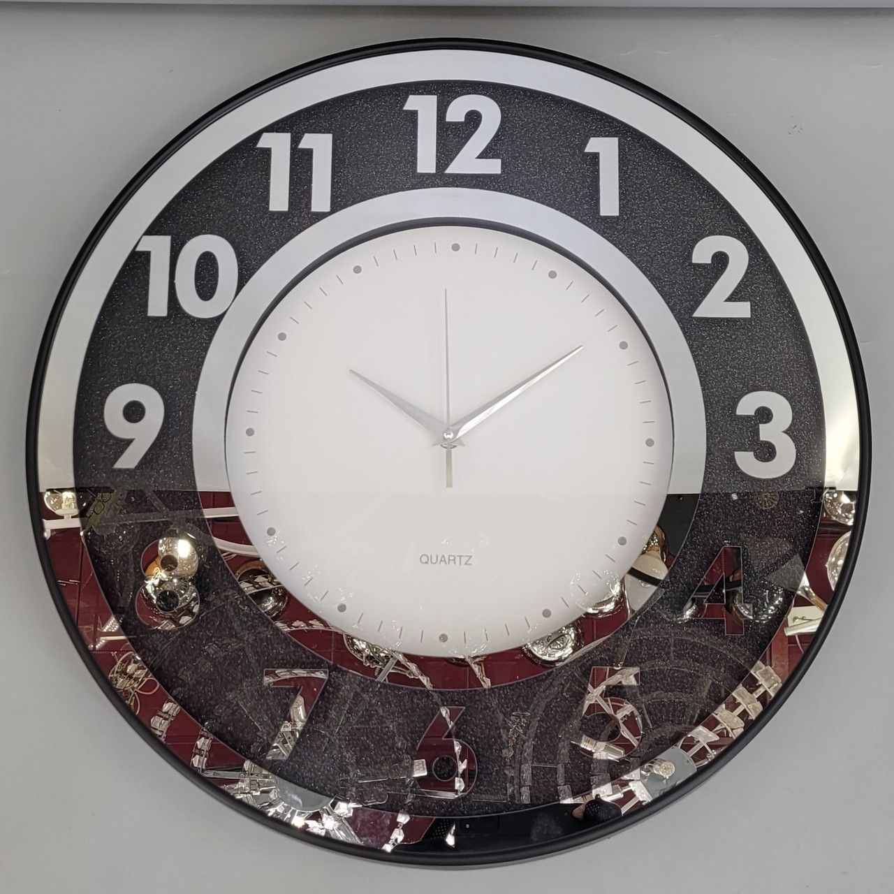 Диаметр: 50,7 см Толщина: 4,4 см Вес: 1,830 кг Материал: стекло, пластик Внутри часов блестки. Механизм: кварцевое Питание: батарейка АА Гарантия: 12 месяцев