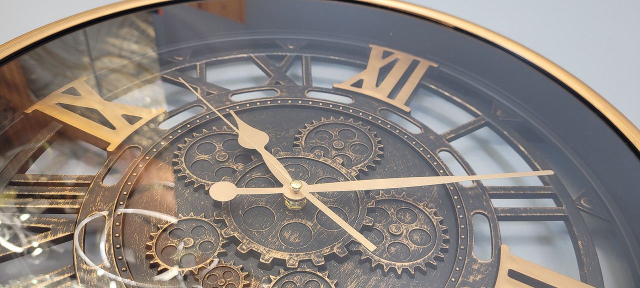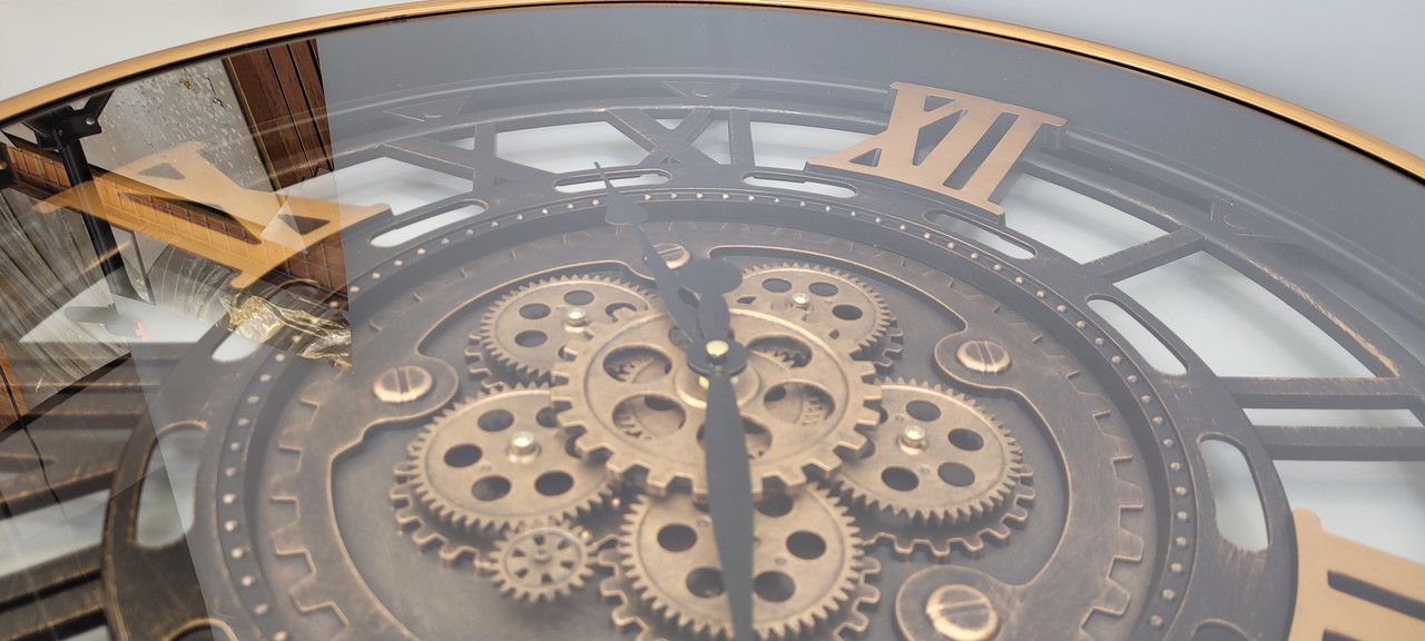 Настенные бесшумные часы (35,2 см) с открытым механизмом в винтажном стиле - OV-0039 В наличии