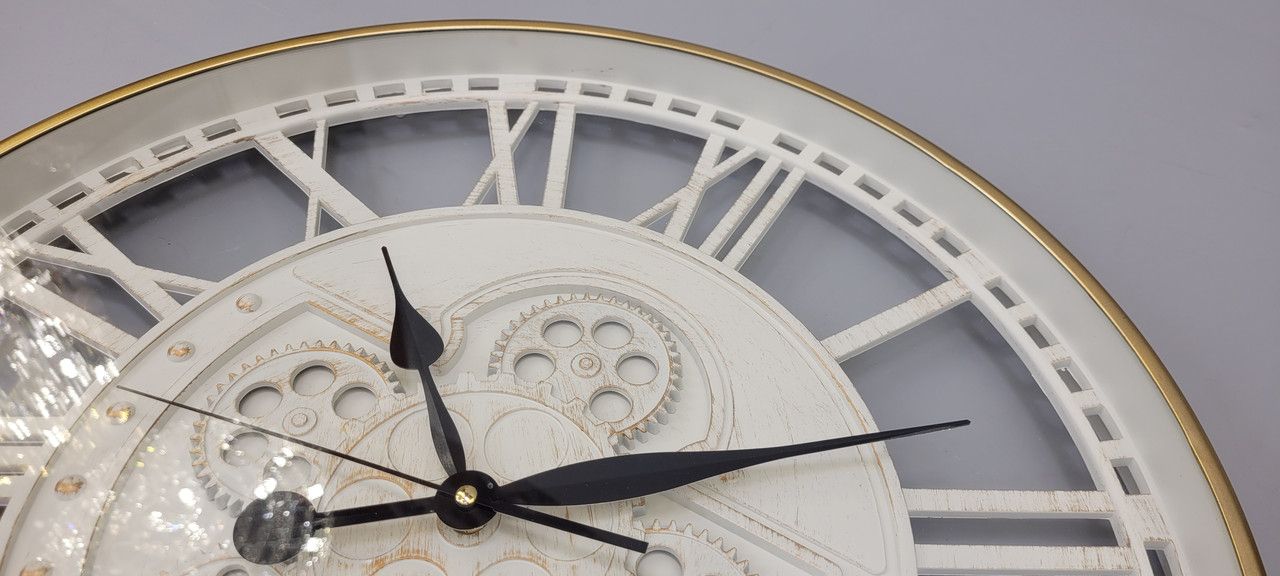 Настенные бесшумные часы (35,2 см) с открытым механизмом в винтажном стиле - OV-0039 В наличии