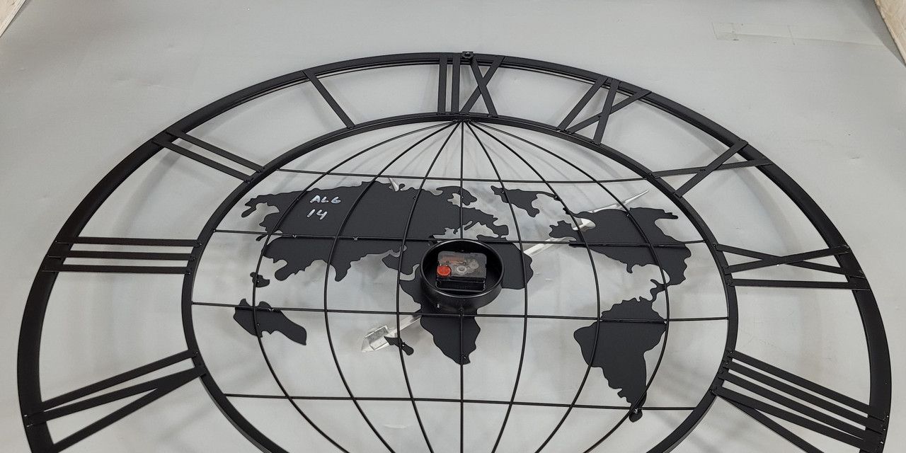 Настенные бесшумные часы лофт (90,1 см) из металла, черные OV-0067