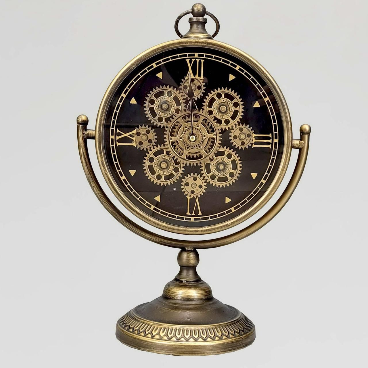 Высота: 44 см Ширина: 31 см Вес: 1,425 кг Материал: стекло, металл Декоративные шестерни, самостоятельно вращающиеся через дополнительные батареи. Механизм: кварцевое Питание: батарейка АА Гарантия: 12 месяцев