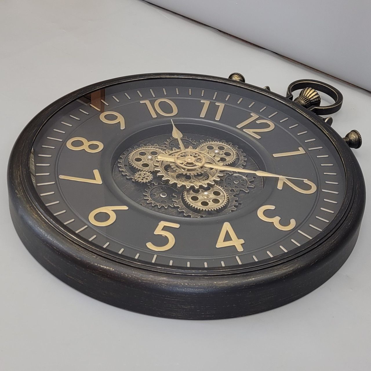 Настенные бесшумные часы (35,2 см) с открытым механизмом в винтажном стиле - OV-0039 В наличии