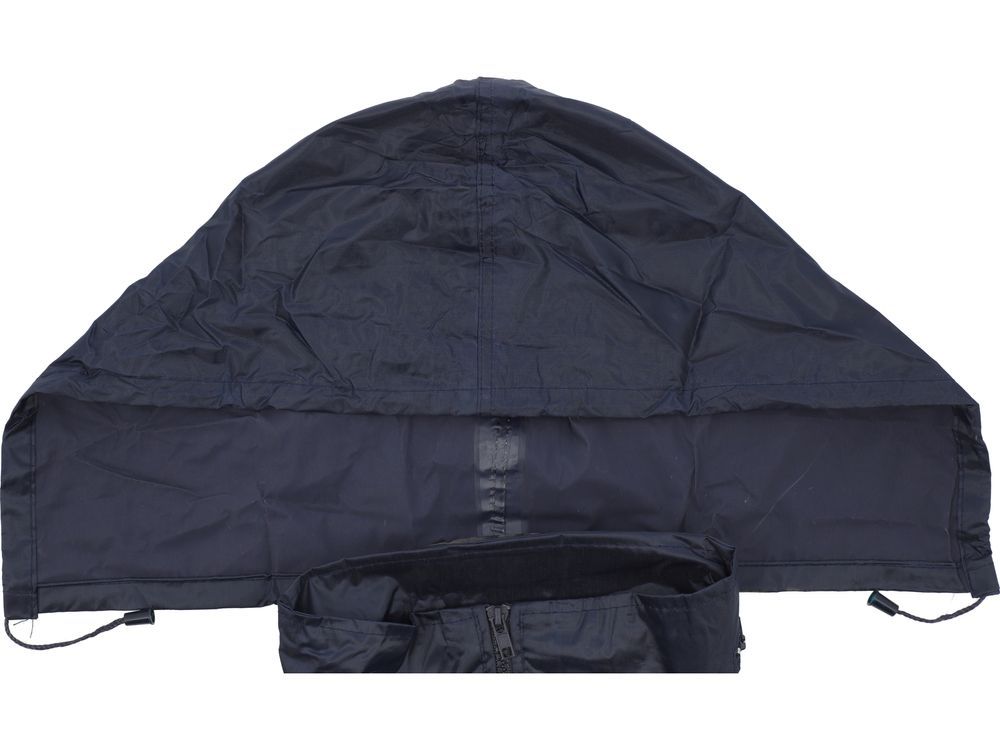 Куртка с двумя большими карманами и регулируемым капюшоном, брюки с эластичным поясом и разрезами по бокам для доступа к карманам брюк под ними.